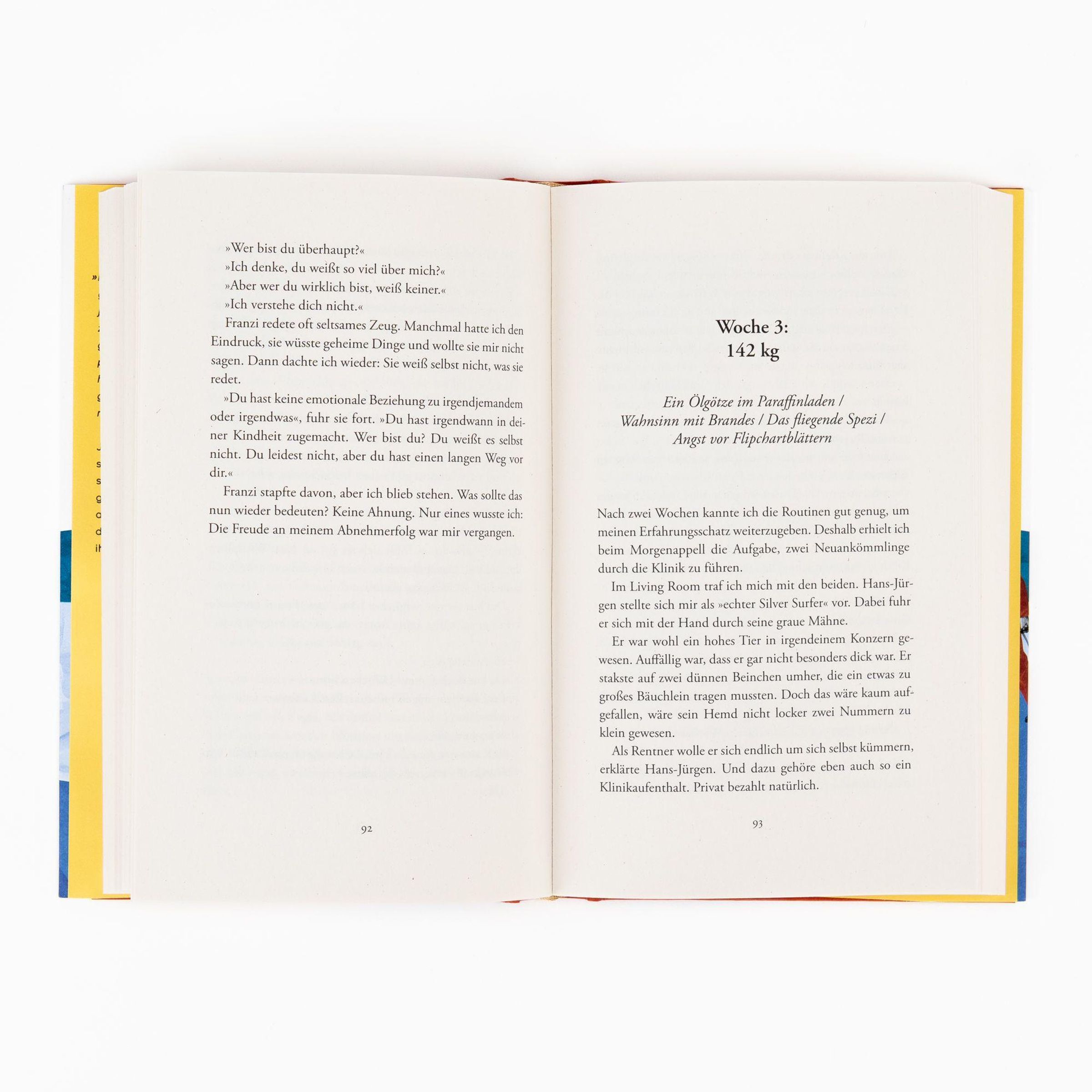 147 Kilo aber eigentlich kein echtes Problem ...Das denkt Jan, bis er in eine Klinik für Adipositas kommt. Dort trifft er Franziska, die ihn dazu bringt, den Satz "Ich bin dick" auszusprechen - der Beginn vieler Aha-Momente. Zwischen Gruppentherapien, skurrilen Übungen und emotionalen Rückschlägen lernt Jan, dass es nicht nur ums Abnehmen, sondern auch um Gefühle geht. Doch als er scheitert und aufgibt, helfen unerwartete Wendungen und die Unterstützung anderer, ihn zurück auf Kurs zu bringen.