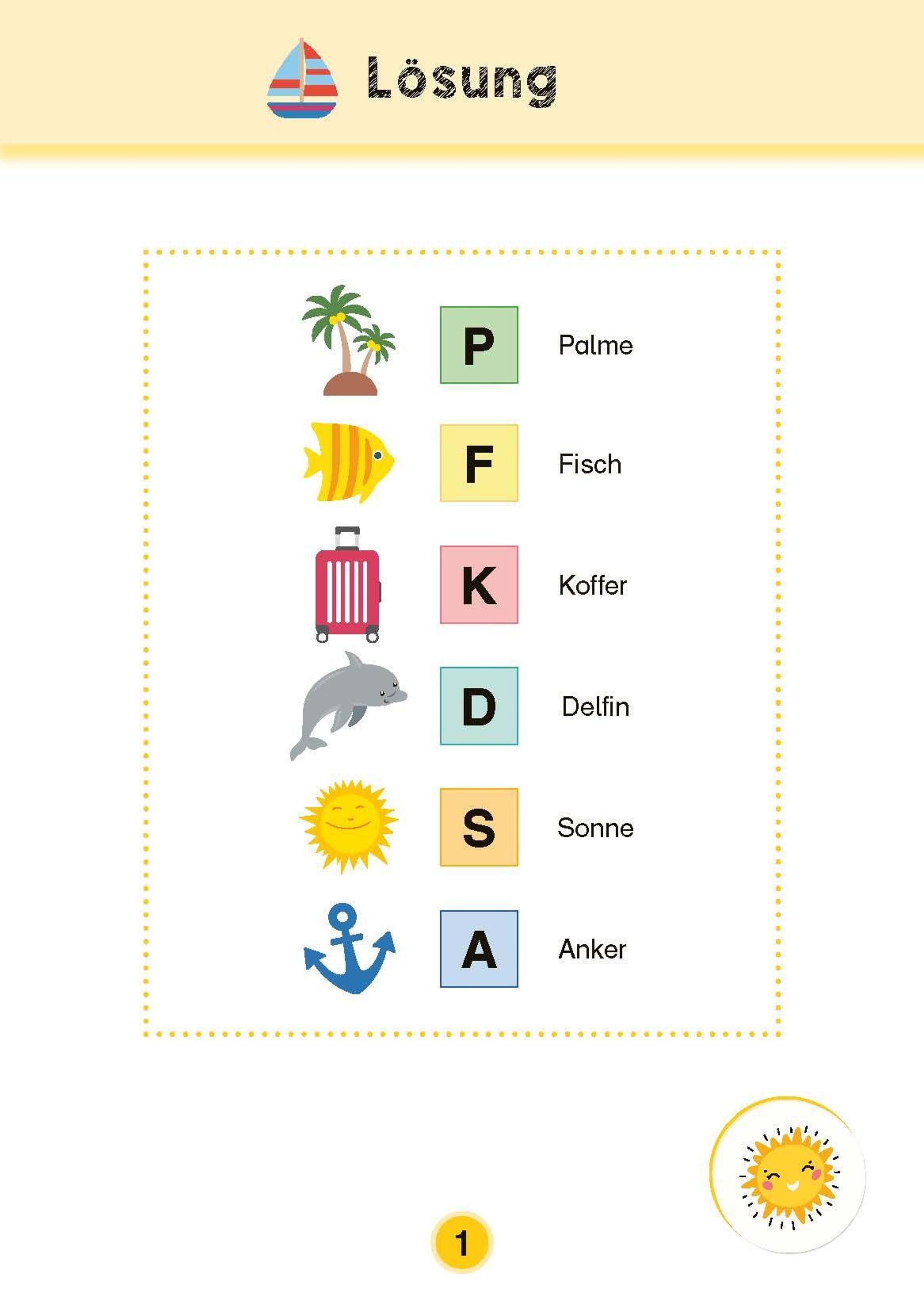 Lernen mit Spaß unter dem Label der Schülerhilfe: Unsere neue Reihe "Mein Ferienblock" motiviert Kinder der 1. Klasse dazu, auch während der Ferien in den Fächern Deutsch und Mathematik ein wenig zu üben. Durch die Kombination aus spielerischen Übungen und kniffligen Lernrätseln kommt der Spaß dabei nie zu kurz. Die Aufgaben sind perfekt auf den Lernstoff der 1. Klassenstufe abgestimmt und so gestaltet, dass sie nicht nur lehrreich, sondern auch unterhaltsam sind. Durch den Spaßcharakter der Aufgaben wird das Lernen zur kurzweiligen Beschäftigung, die die Kinder gern in Angriff nehmen. Ob auf langen Autofahrten oder an verregneten Tagen - unser Ferienblock ist die ideale Lösung, um Langeweile zu vertreiben und gleichzeitig das Grundwissen der 1. Jahrgangsstufe zu festigen. Jede Seite enthält eine Übung, die Lösungen befinden sich auf der Rückseite. Auf allen Seiten sind die Themen Ferien und Urlaub präsent, was sich auch in der reichhaltigen und fröhlichen Bebilderung widerspiegelt. Die Belohnungssticker sorgen für zusätzliche Motivation: Hat das Kind eine Aufgabe gelöst, kann es einen der bunten Urlaubssticker in den Rahmen auf der Lösungsseite kleben.