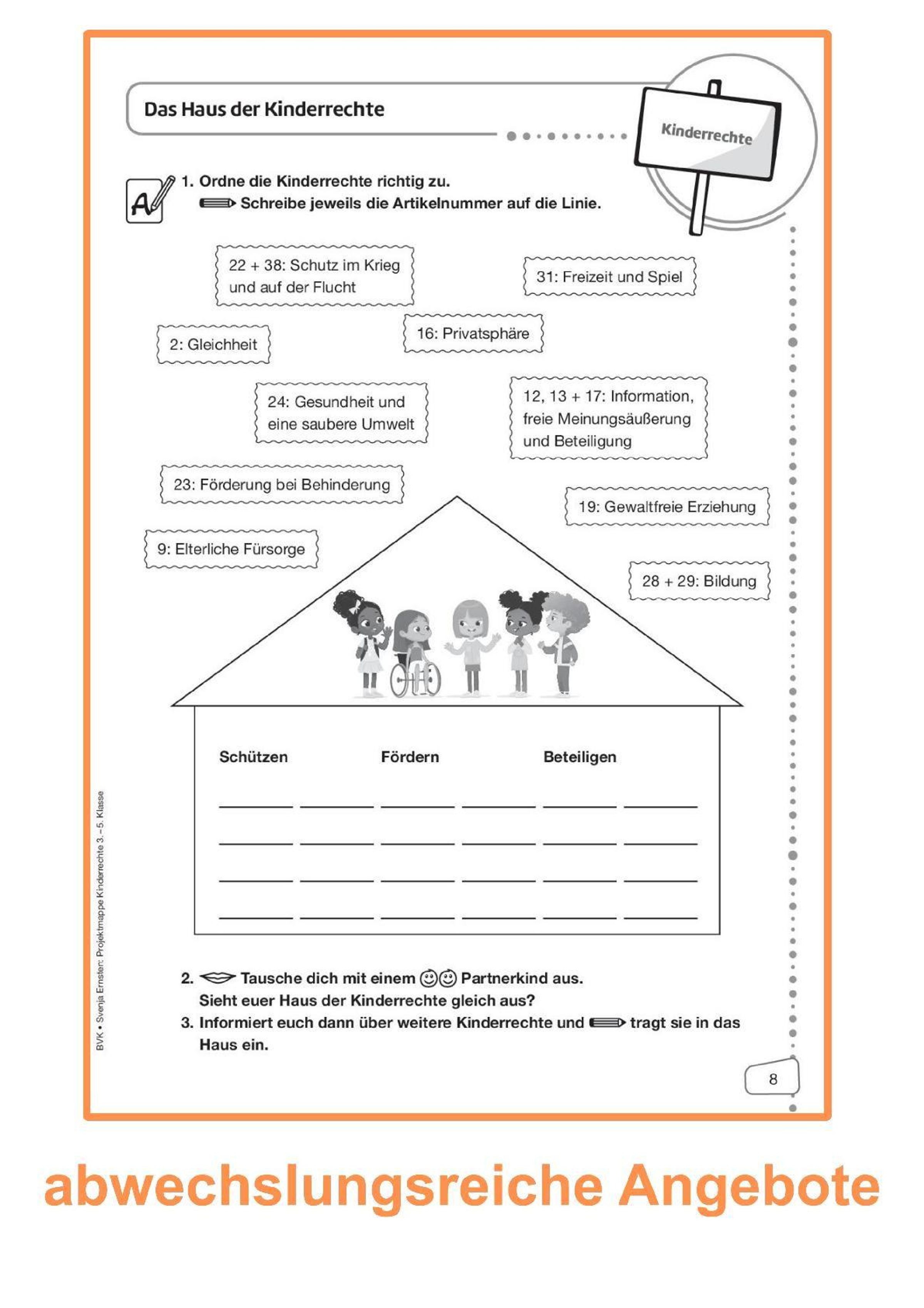 Diese Projektmappe unterstützt Lehrkräfte darin, das Thema "Kinderrechte" abwechslungsreich und handlungsorientiert im Unterricht zu gestalten. Die altersgerechten Materialien sensibilisieren die Kinder für die Bedeutung eines respektvollen Miteinanders und schaffen ein Bewusstsein dafür, welche Rechte ihnen zustehen. Ausgehend von der Lebenswelt der Kinder werden unter anderem folgende Kinderrechte vertiefend behandelt: das Recht auf Gleichheit, das Recht auf Gesundheit, das Recht auf Bildung, das Recht auf Spiel und Freizeit, das Recht auf Schutz der Privatsphäre, das Recht auf freie Meinungsäußerung, das Recht auf gewaltfreie Erziehung unddas Recht auf elterliche Fürsorge.