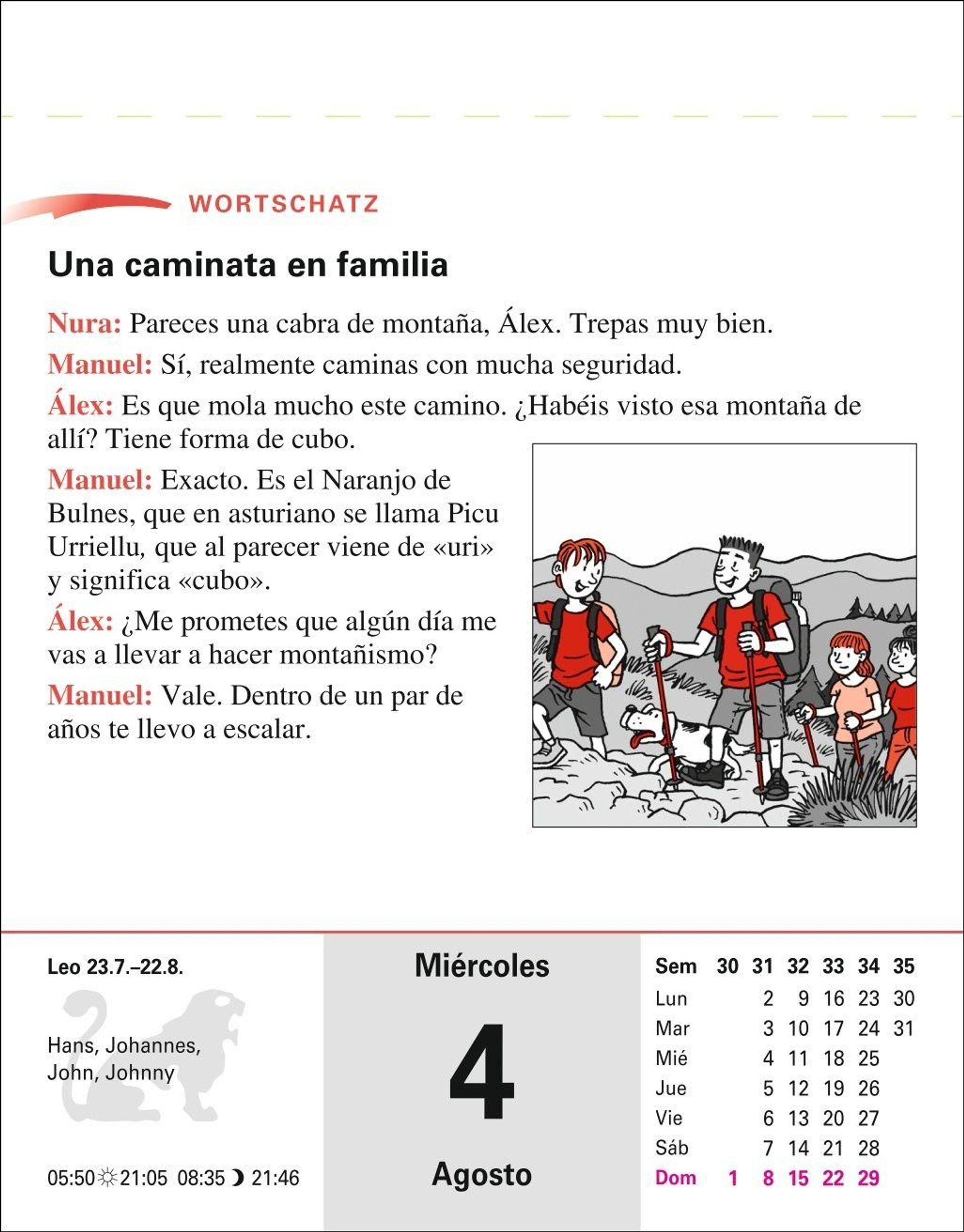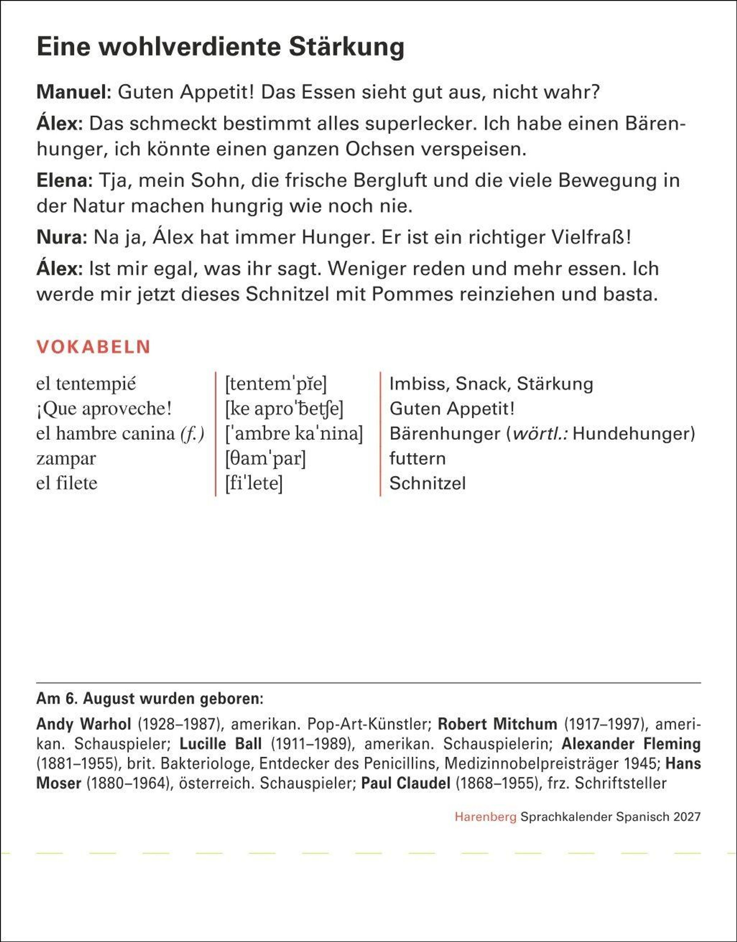 Ein Abreißkalender mit mehr als 600 Seiten Alltagsdialogen, Landeskunde, verständlich erklärter Grammatik und abwechslungsreichen Übungen