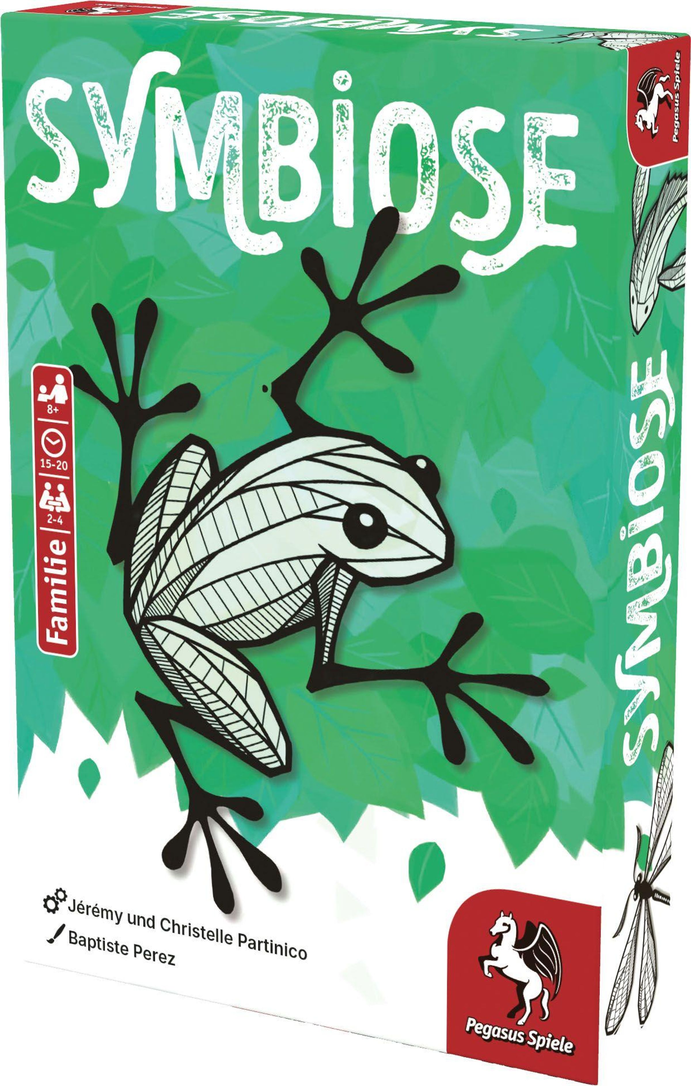 In Symbiose wollen sich die Spielenden innerhalb von sieben Runden den lukrativsten Teich zusammenstellen. In jeder Runde tauschen sie dazu eine Karte aus ihrem Startteich mit einer Karte aus der Auslage, dem Fluss. Ob sie dabei auf volles Risiko gehen und eine noch verdeckte Karte aus ihrem Teich eintauschen oder eine der bereits aufgedeckten Karten, bleibt ihnen überlassen. Durch das Eintauschen gegen offen ausliegende Karten bzw. das Umdrehen einer weiteren Teichkarte liegt in jeder Runde eine offene Karte mehr in der Auslage der Spielenden als in der Runde zuvor. Am Spielende werten die Mitspielenden ihren Teich aus: Für die vier mittleren Karten ihrer Auslage erhalten sie je nach Karte fixe Punkte oder Punkte pro Farbe bzw. Tier in ihrem Teich. Für die variablen Punkte der beiden äußeren 2er-Reihen schauen sie jedoch auf die Teiche der linken bzw. rechten Nachbar*innen. Symbiose kann auch im Duell-Modus 1 gegen 1 gespielt werden oder im Team-Modus 2 gegen 2. Außerdem ist das Teichbauspiel Teil der Spielreihe Einfach! Schnell! Clever!