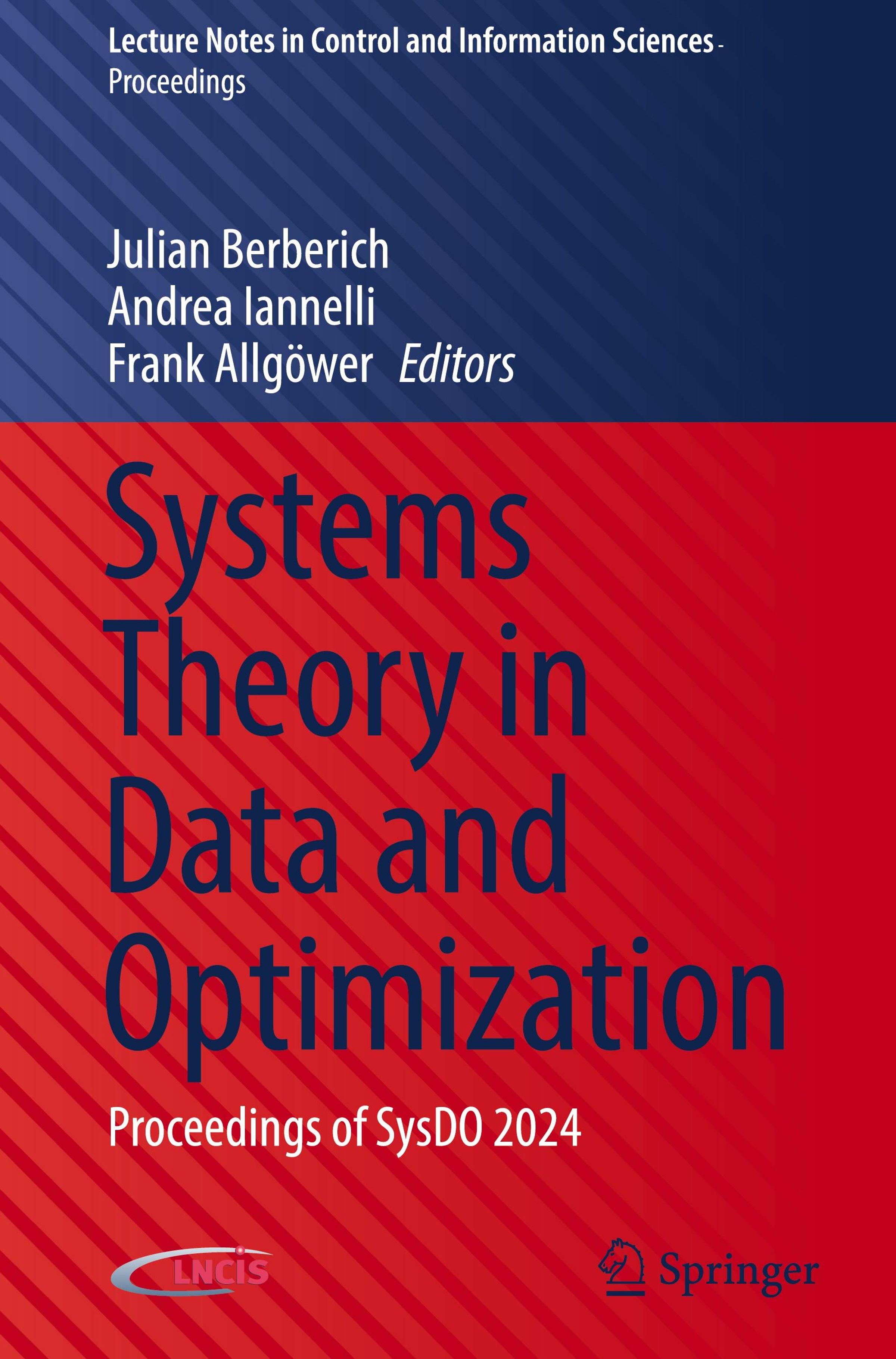 "Systems Theory in Data and Optimization: Proceedings of SysDO 2024." Oben blauer Hintergrund, unten roter Hintergrund, Springer-Logo., Buch
