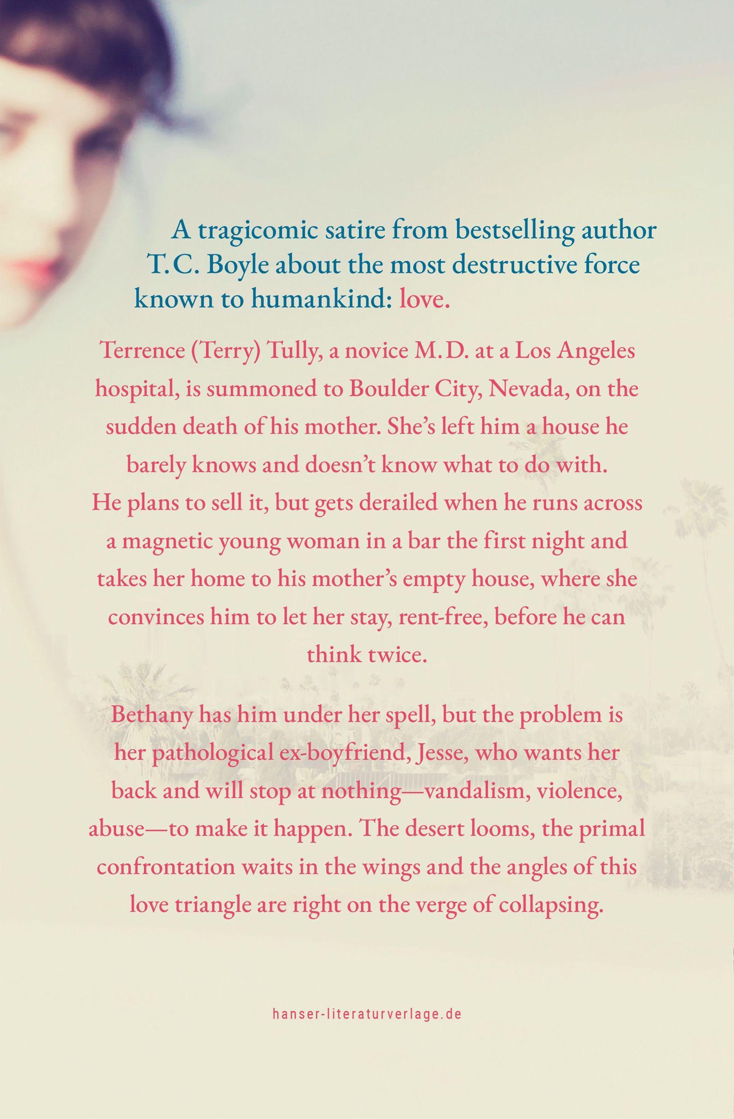 From bestselling author T. C. Boyle comes a thought-provoking, tragicomic satire about the most destructive force known to humans: love. Terry, a reclusive, eccentric doctor from Los Angeles, moves into his mother's house in Boulder City after her death. He plans to sell it but changes his mind when he meets the charismatic Bethany in a bar one night, who moves in with him before he can think twice. Terry's new life would be perfect-if only it weren't for Bethany's jealous ex-boyfriend, Jesse, who keeps turning up and warning Terry: 'She's poison.' In the middle of the Nevada desert, a showdown between the two men awaits.