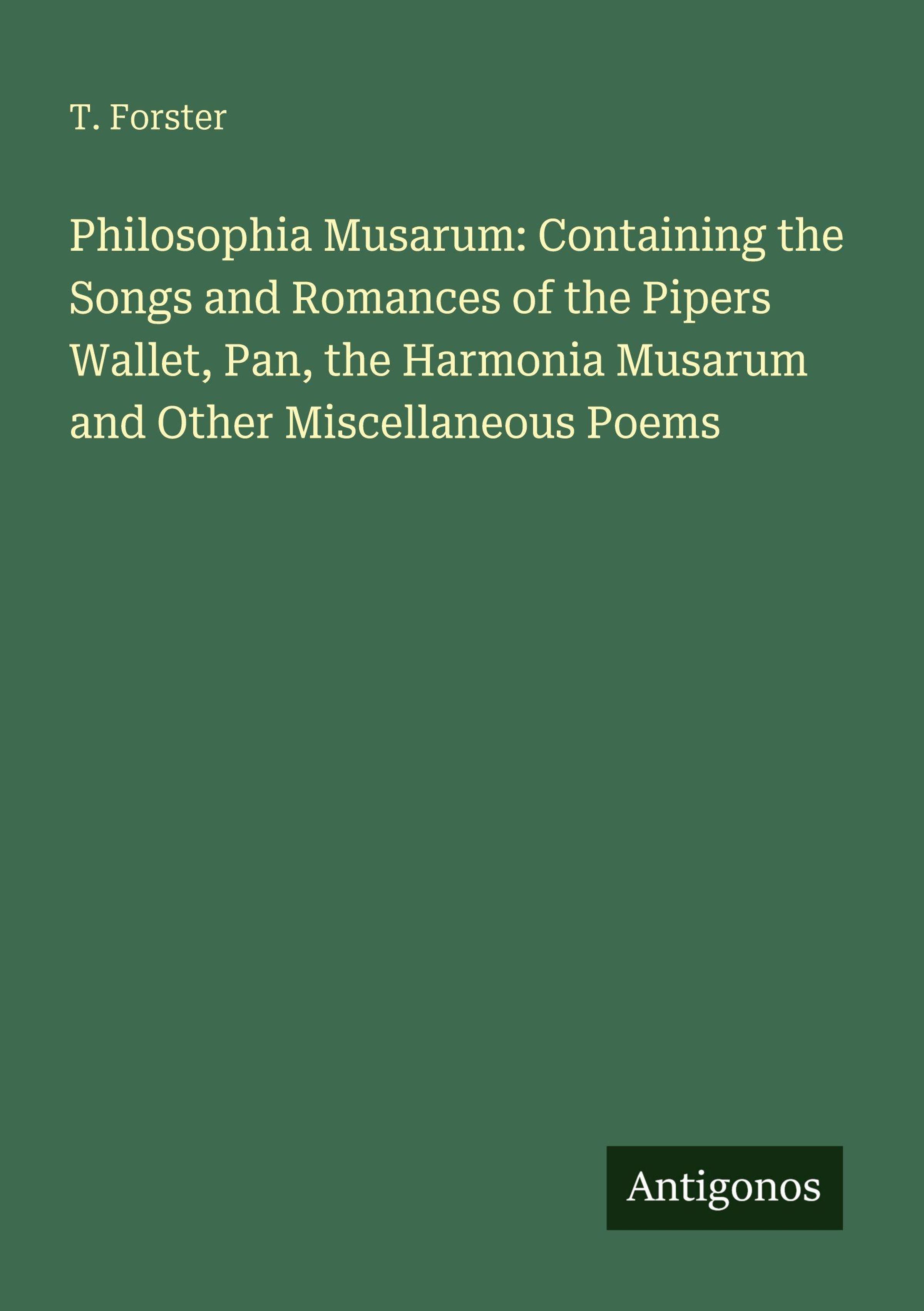 T. Forster: Philosophia Musarum: Containing the Songs and Romances of the Pipers Wallet, Pan, the Harmonia..., Kartoniert / Broschiert
