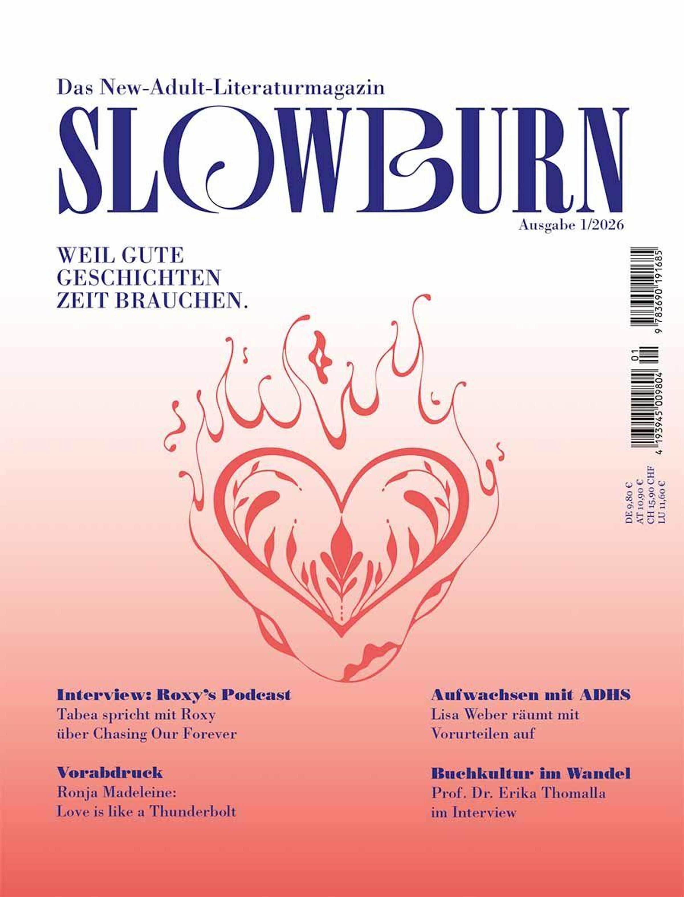 Das erste und einzige New-Adult-Literaturmagazin! Seit einiger Zeit herrscht in der New-Adult-Szene Überforderung. Welches Buch soll gelesen werden, welche Veranstaltungen gibt es in meiner Nähe, welche Themen sind gerade beliebt? SlowBurn - benannt nach dem New-Adult-Subgenre, in dem es um sich langsam entwickelnde Liebesgeschichten geht - hat sich zum Ziel gesetzt, das einordnende, mit viel Zeit und Leidenschaft in die Tiefe gehende Medium zu sein. Und das nicht nur für die Community, sondern auch von ihr. Wechselnde Influencerinnen unterstützen das Redaktionsteam nämlich inhaltlich und gestalten gleichzeitig den Onlineauftritt des Magazins mit. Die Redaktion arbeitet auf Hochtouren, frei nach dem Motto: Facts, Fiction and Lots of Love