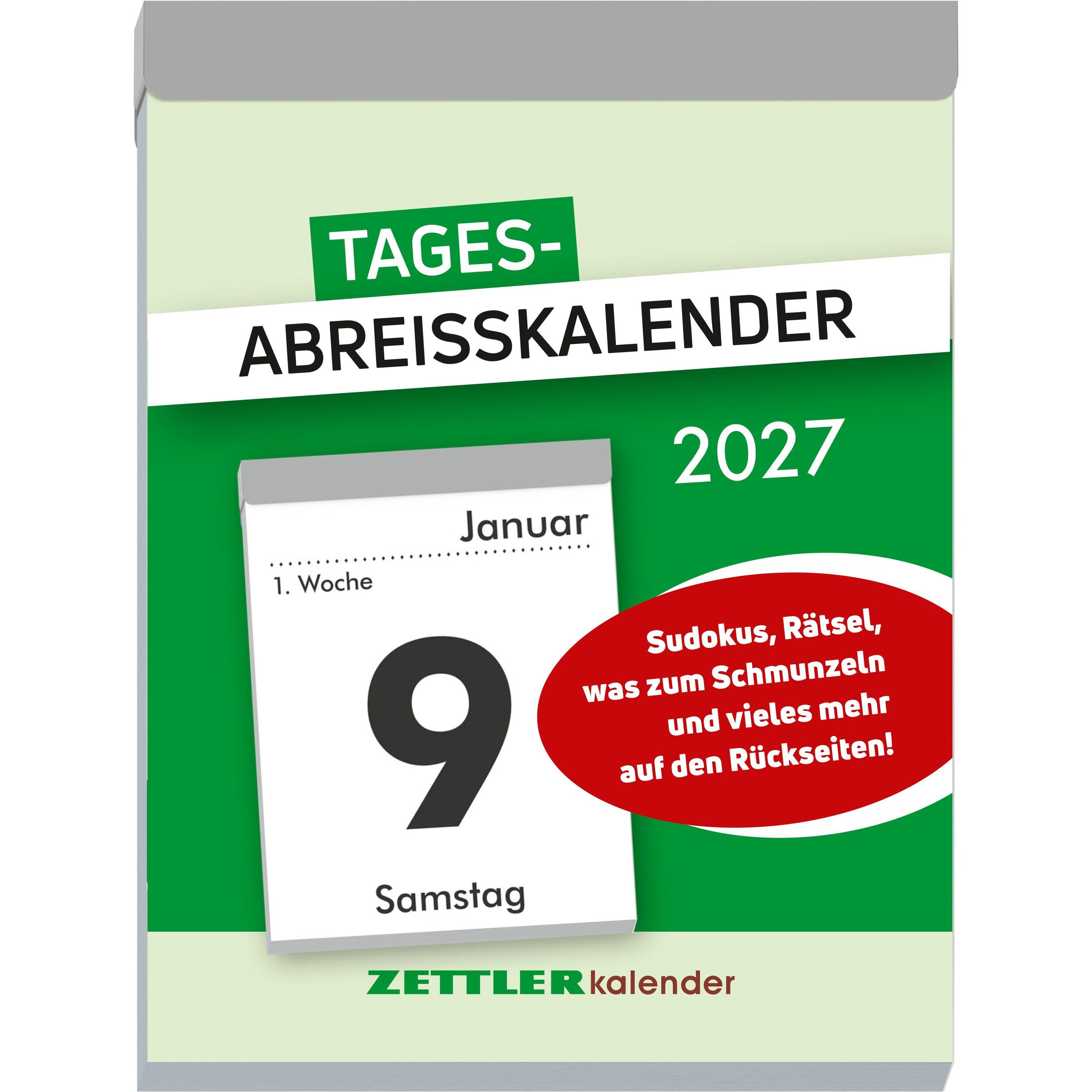 Mit dem Zettler Tagesabreißkalender XL 2027 starten Sie jeden Tag gut informiert und unterhalten -- der ideale Allrounder für Zuhause, Büro und Familie.