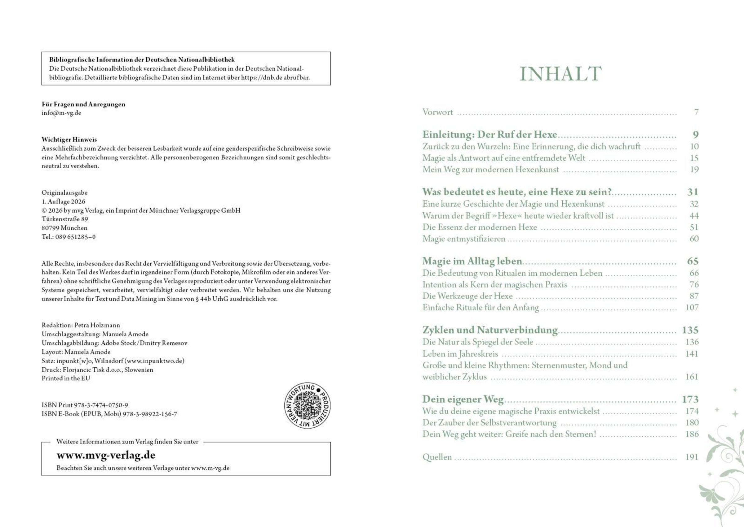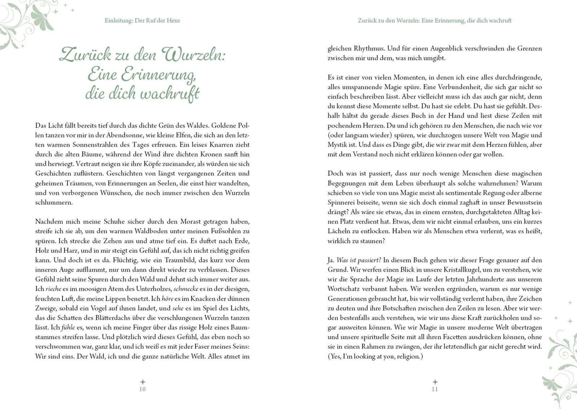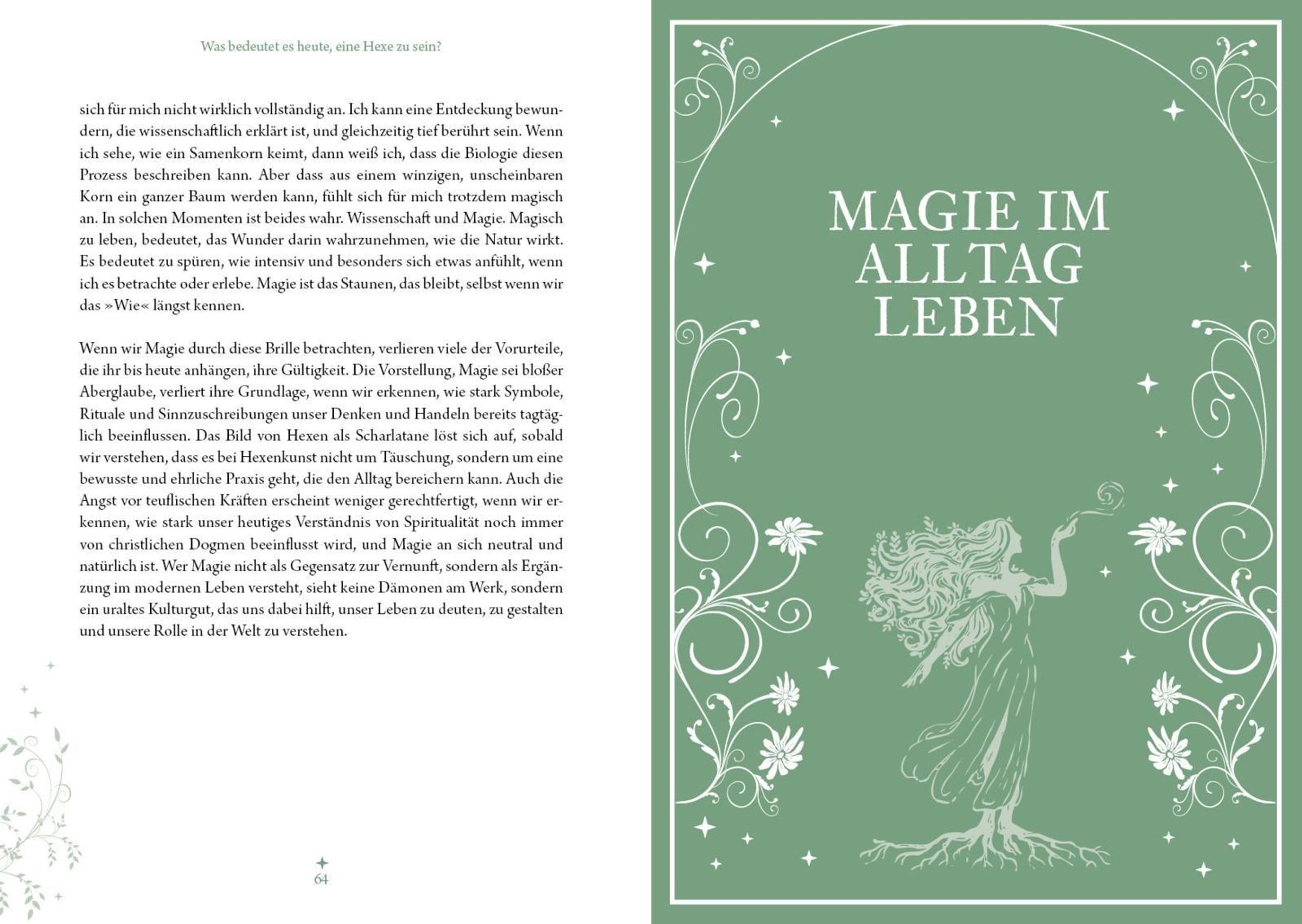 "Der Ruf der Hexe. Folge deinem Weg zu wahrer Selbstermächtigung, Intuition und Naturmagie." Illustration: Frau in fließendem Kleid., Buch