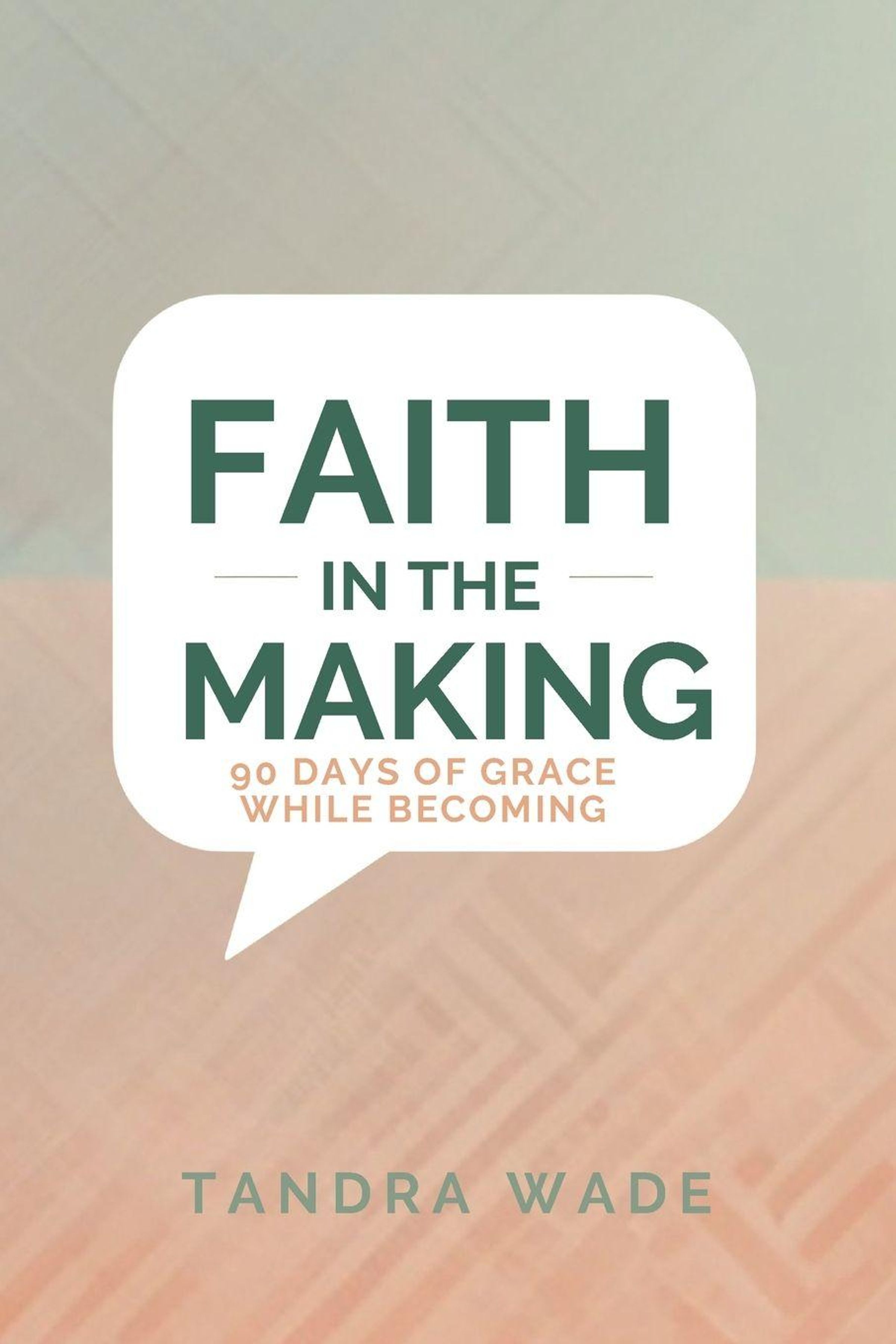 "Faith in the Making: 90 Days of Grace While Becoming" steht in großer Sprechblase über pastellfarbenem Hintergrund. Darunter "Tandra Wade"., Buch