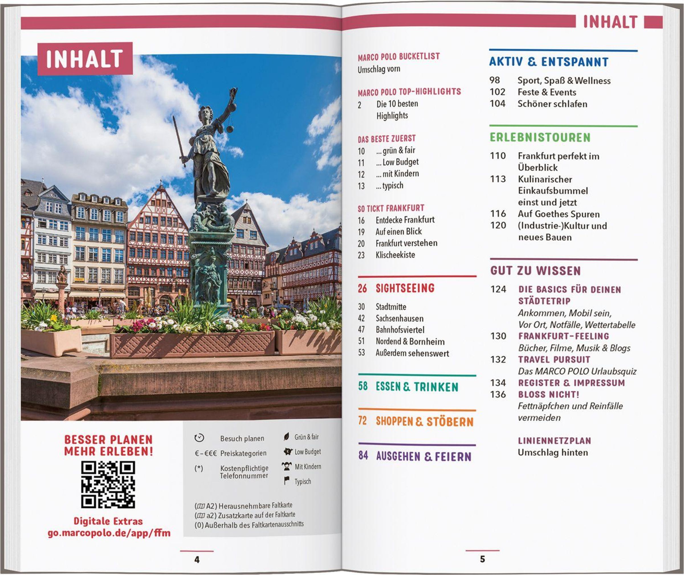 Worauf auch immer du Lust hast: Mit dem komplett überarbeiteten Kartenmaterial hast du stets den Überblick. Ob Aktivurlaub oder entspannter Städtetrip - mit dem MARCO POLO Reiseführer Frankfurt am Main wird deine Reise zu einem unvergesslichen Erlebnis!