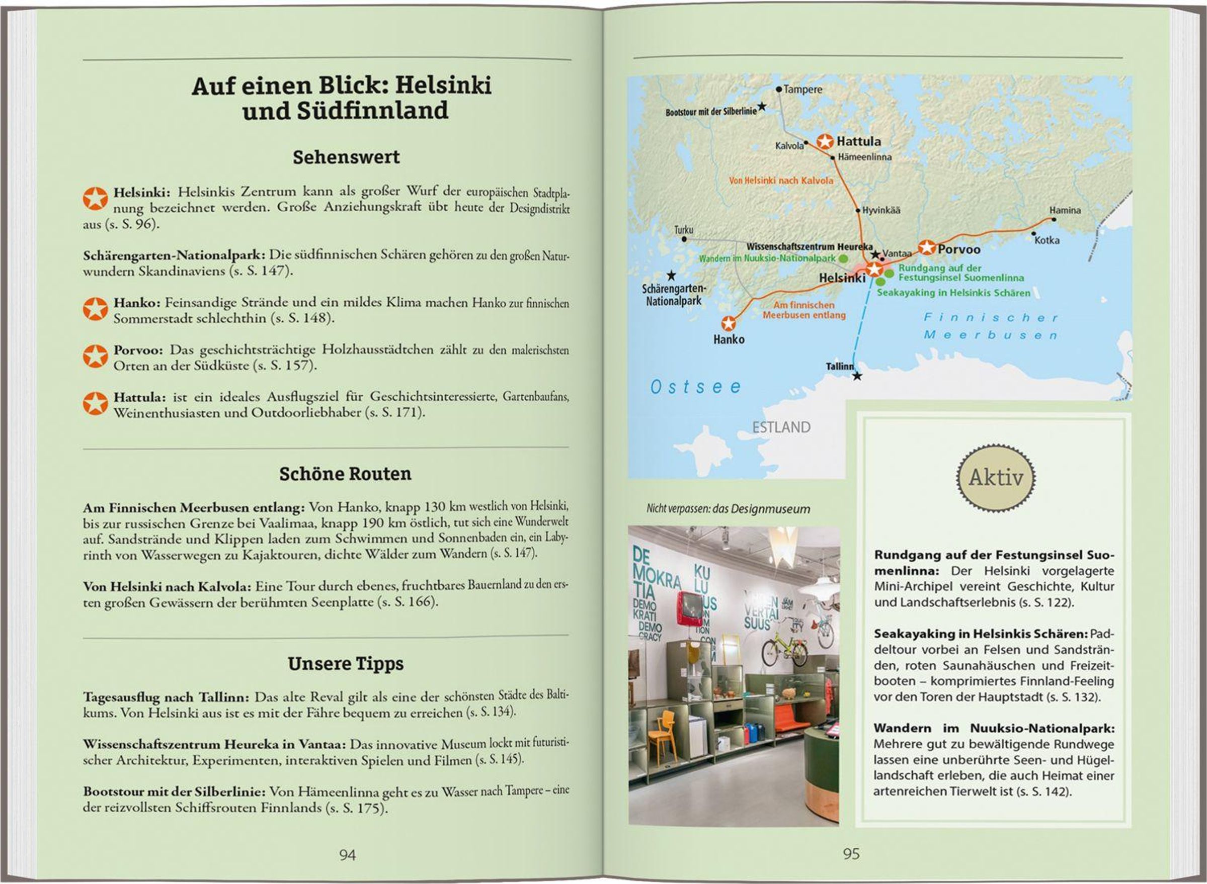Das DUMONT Reise-Handbuch entführt Sie mitten hinein in Ihr Urlaubsziel Finnland. Die Kapitel über Land und Leute gewähren erhellende Einblicke in die finnische Geschichte, Wirtschaft und Kultur. So lernen Sie das Alltagsleben der Finnen schon vor Ihrer Reise kennen und kommen vor Ort leichter mit Einheimischen ins Gespräch. Von den sehenswertesten Stadtvierteln Helsinkis bis zu den einsamen Weiten Lapplands werden alle Regionen des Landes ausführlich beschrieben. Eingestreute Themenseiten heben ihre Besonderheiten hervor und liefern Geschichten und Fakten, die nicht jeder kennt. Egal ob Sie sieben Tage oder einen Monat hier verbringen: Mit diesem Finnland-Reiseführer holen Sie das Beste aus Ihrem Urlaub heraus!