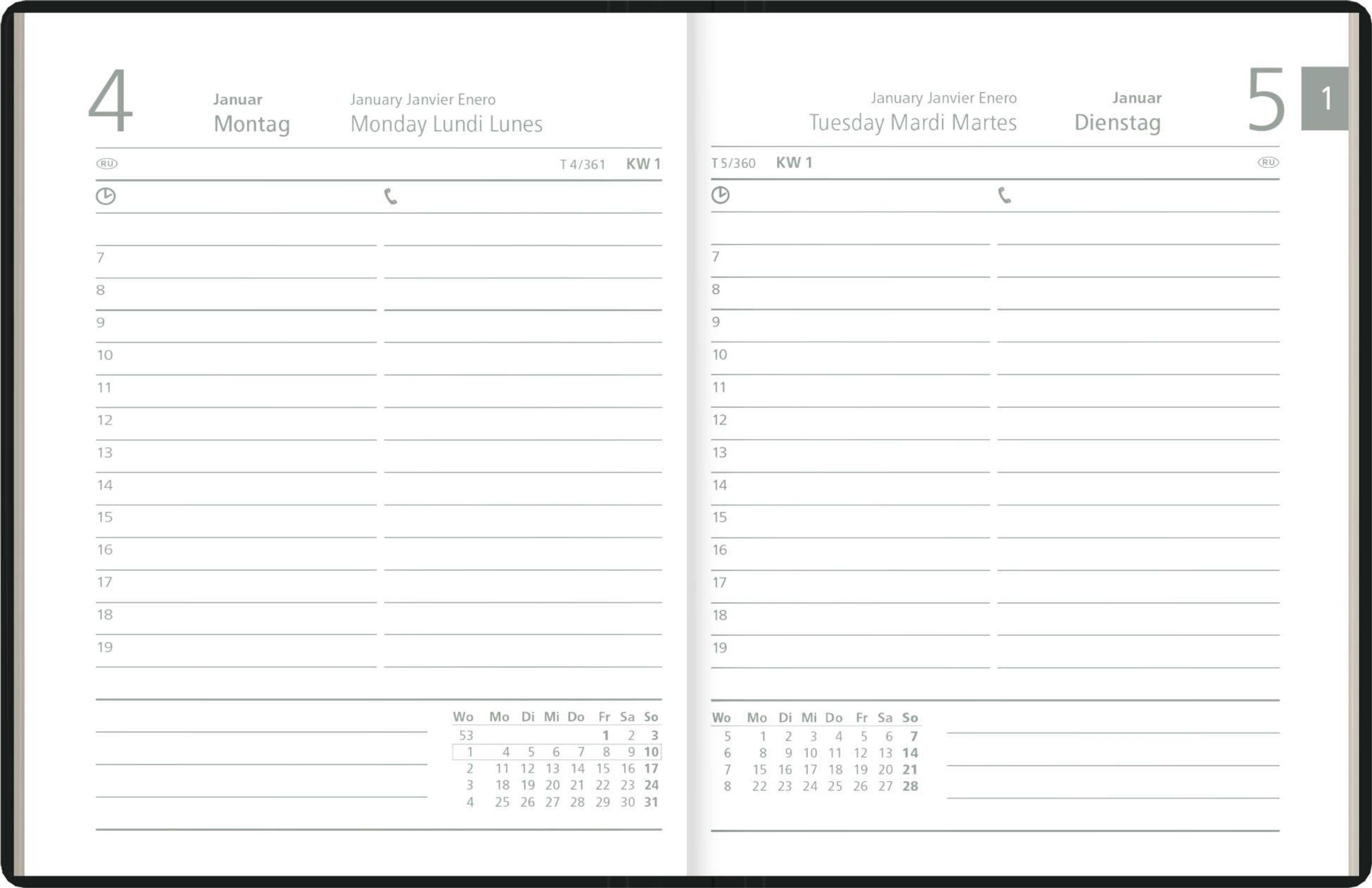 Sprachvielfalt: 4-sprachiges Kalendarium (DE/GB/FR/ES)