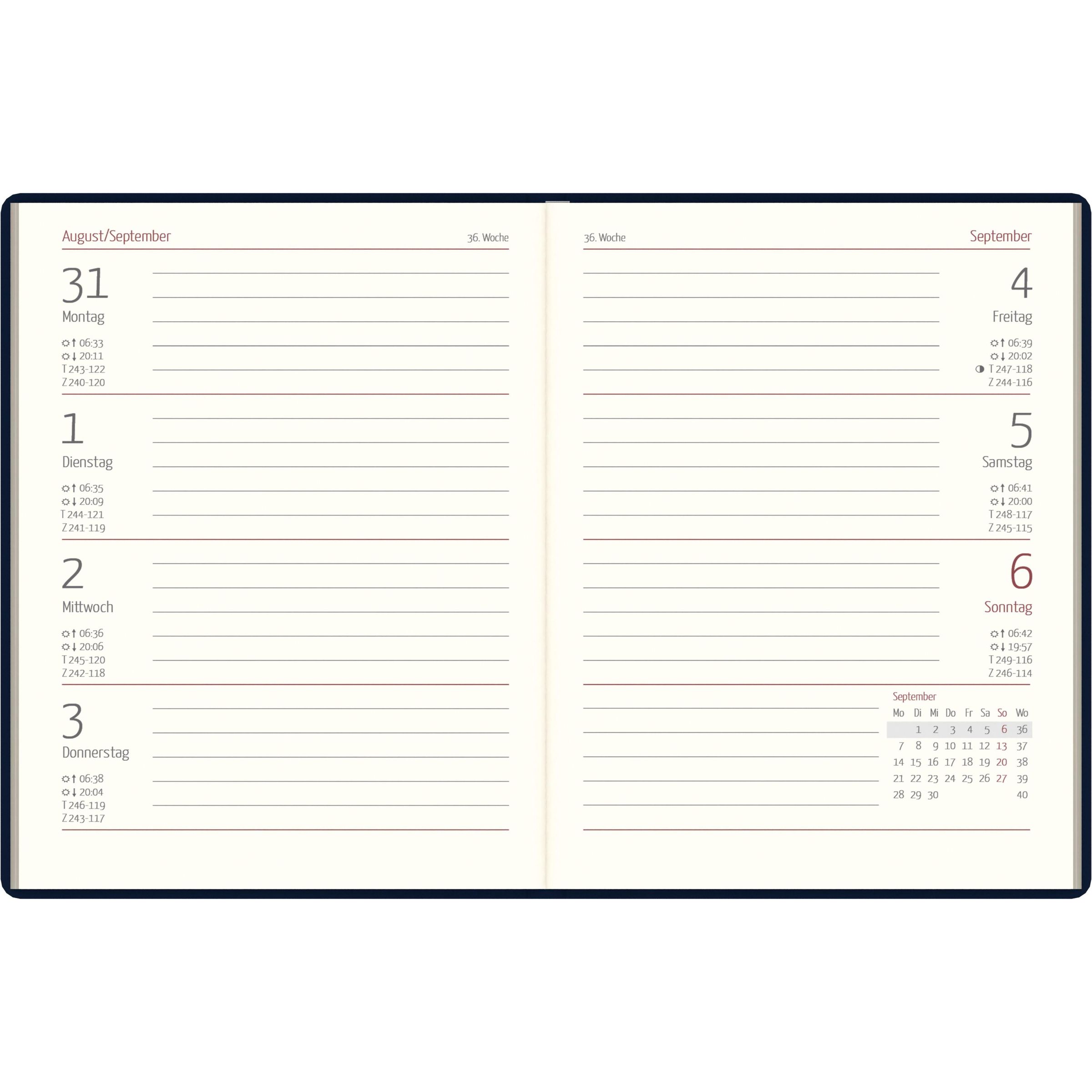 Format & Ausstattung: 10 × 14 cm, 200 Seiten, stabiler blauer Kunststoffeinband mit eleganter Jahreszahl