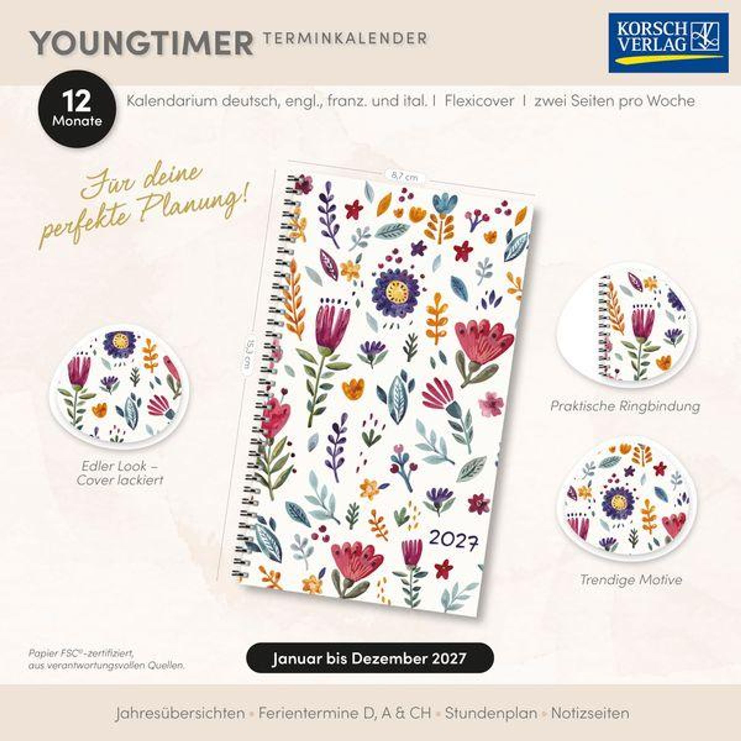 Taschenkalender Youngtimer Flowers 2027, Gebunden