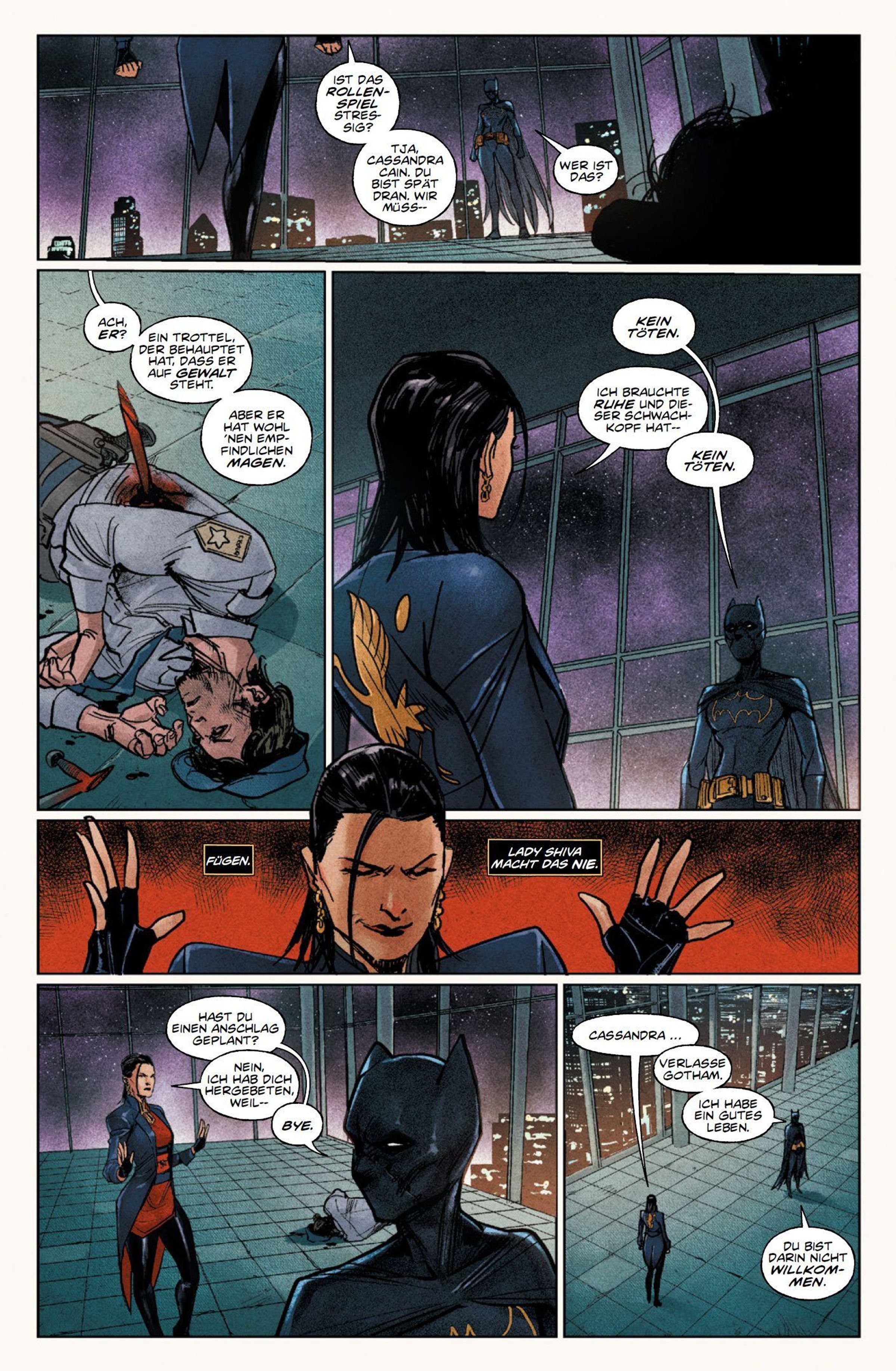MUTTERKOMPLEX In Gotham taucht eine Gruppe Attentäter einer mächtigen Geheimorganisation auf, die es auf Cassandra Cain alias Batgirl und ihre Mutter Lady Shiva abgesehen hat. Als die beiden angegriffen werden, versucht Shiva, die selbst eine gefährliche Attentäterin ist, ihre Tochter zu überzeugen, mit ihr vor diesem übermächtigen Feind zu fliehen. Doch Batgirl kann ihrer Mutter nicht mehr über den Weg trauen. Um jedoch zu überleben und herauszufinden, wer hinter den tödlichen Angriffen steckt, wird sich Cassandra ihrer Mutter und auch ihrer Vergangenheit stellen müssen.