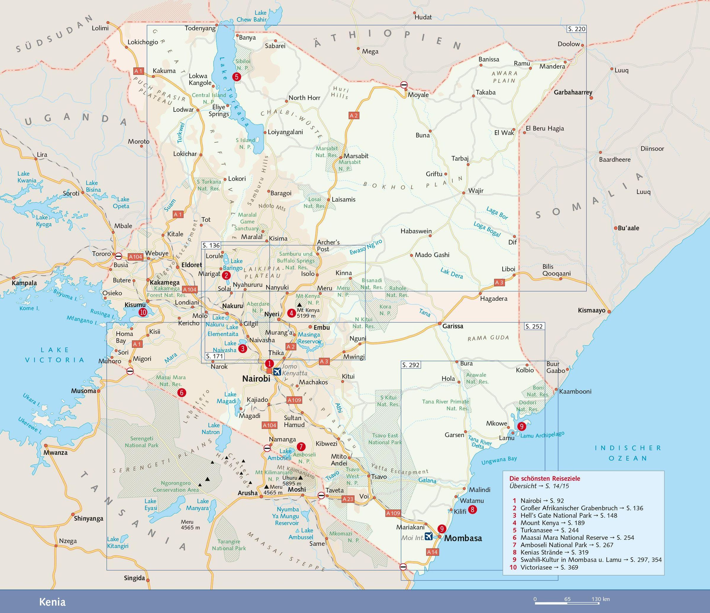 - Mit Nairobi, Mombasa, Mount Kenya, Amboseli-Nationalpark, Maasai Mara und den schönsten Stränden