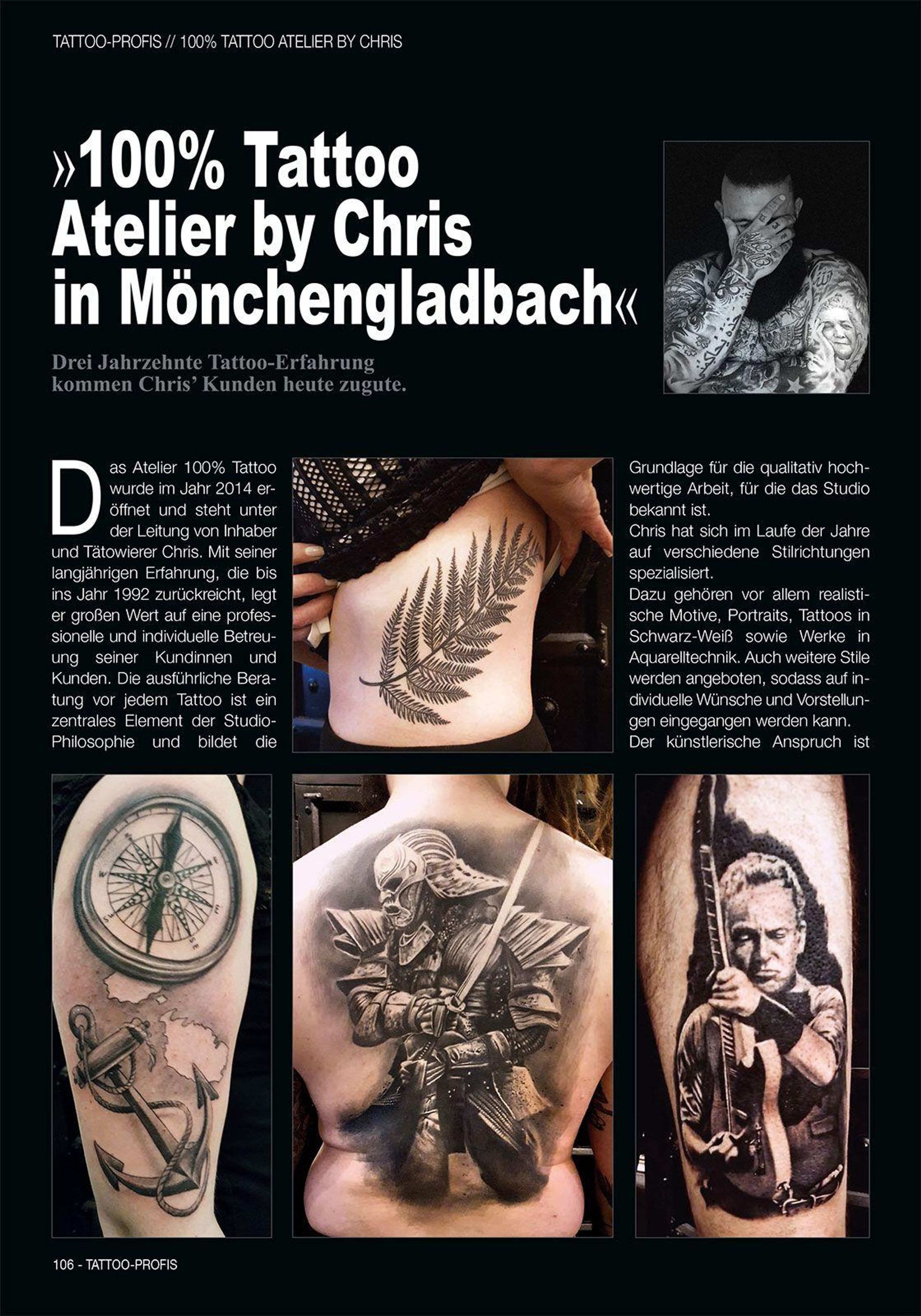Titel: "Tattoo Profis 2 - Studios in Deutschland" Artikel Nr.: 08546 Seiten: 160 Seiten Cover: Hardcover Format: 21 cm x 29, 5 cm Sprache: Deutsch ISBN: 978-3-946386-82-7
