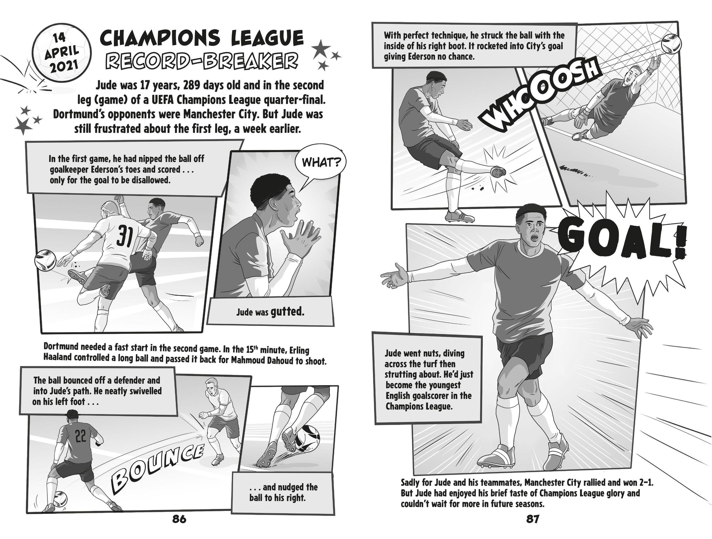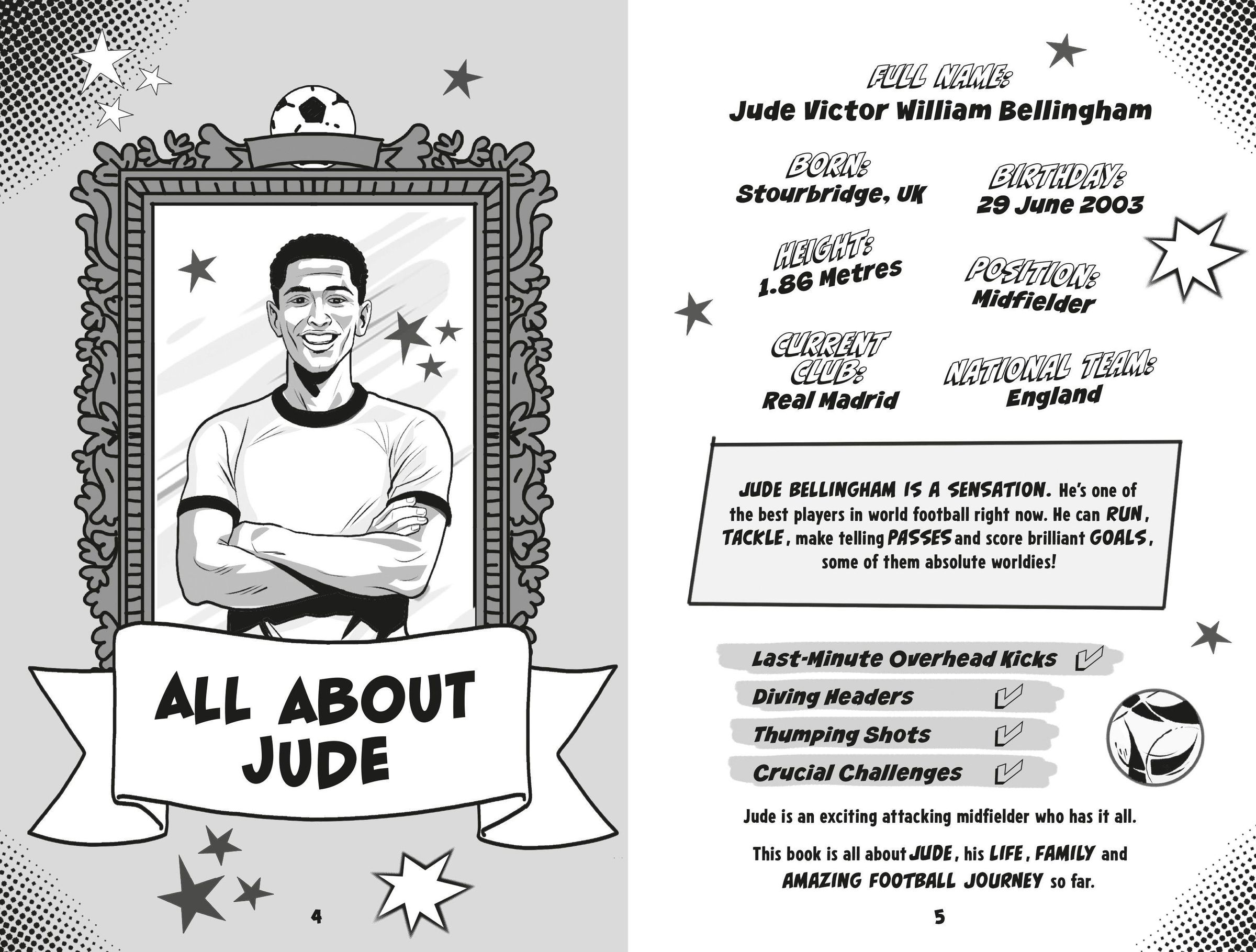 Your football heroes - as you've NEVER seen them before! Discover the epic story of Jude Bellingham. Told in comic book panels packed full of exciting illustrations and bursting with stats and facts, no footie-fanatic can afford to miss it!