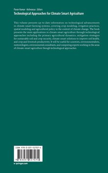 This volume presents up-to-date information on technological advancements in climate smart farming systems, covering crop modeling, irrigation practices, spatial modeling and agricultural policy in the context of climate change. The book presents the main applications in climate smart agriculture through technological approaches including the primary agricultural dynamics, mitigation strategies for sustainable soil and crop security, climate smart solutions to improve soil health, and crop and livestock productivity. It will be useful for scientists, environmentalists, meteorologists, environmental consultants, and computing experts working in the areas of climate-smart agriculture though technological approaches.