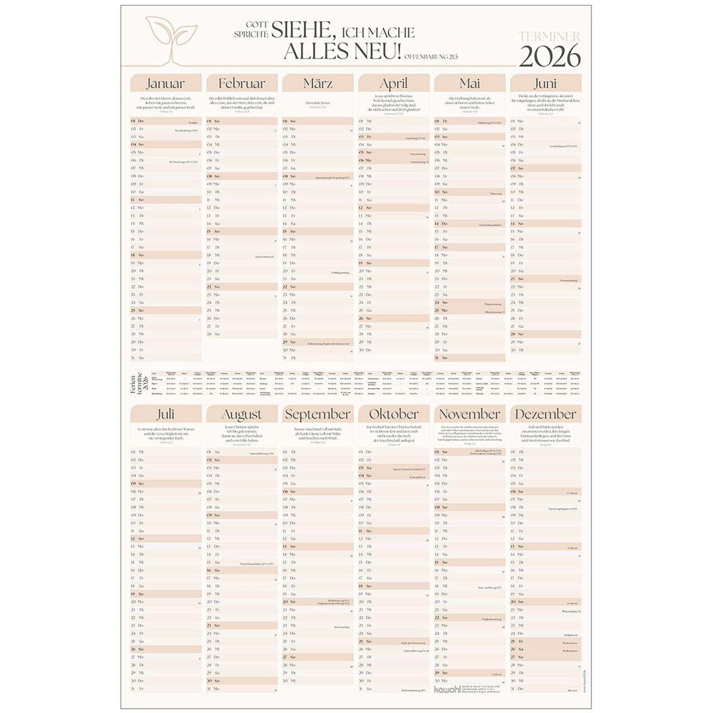 Terminer 2027, Kalender, Kalender