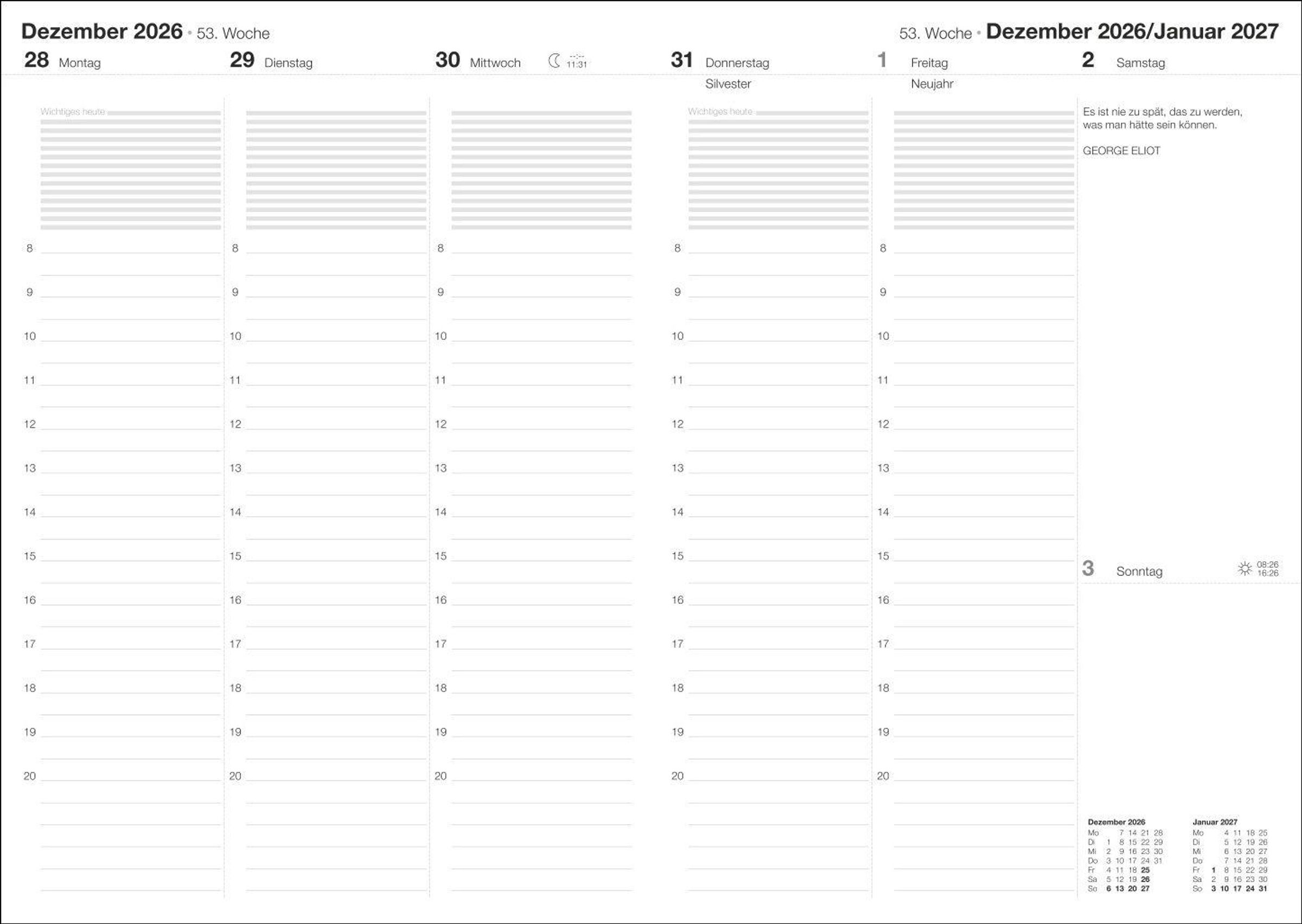 Agenda-Setting mit einer Prise Inspiration: schlichter Terminplaner mit berühmten Zitaten und Weisheiten