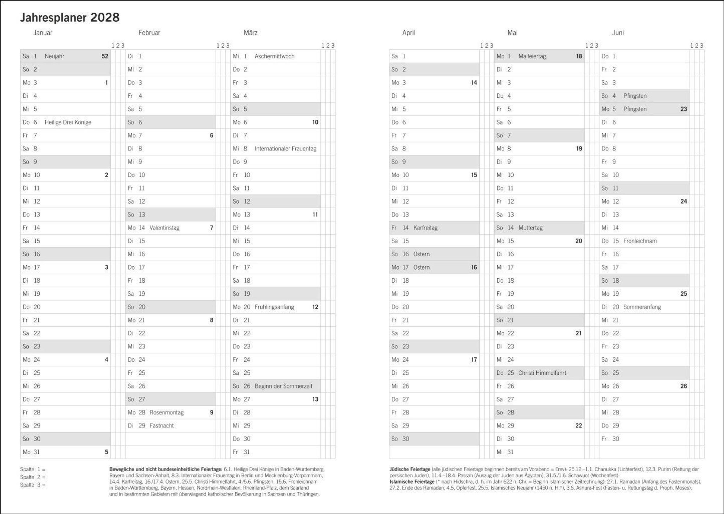 A5-Format mit reichlich Platz für alles, was wichtig ist: Die ganze Woche auf einen Blick im handlichen Terminkalender