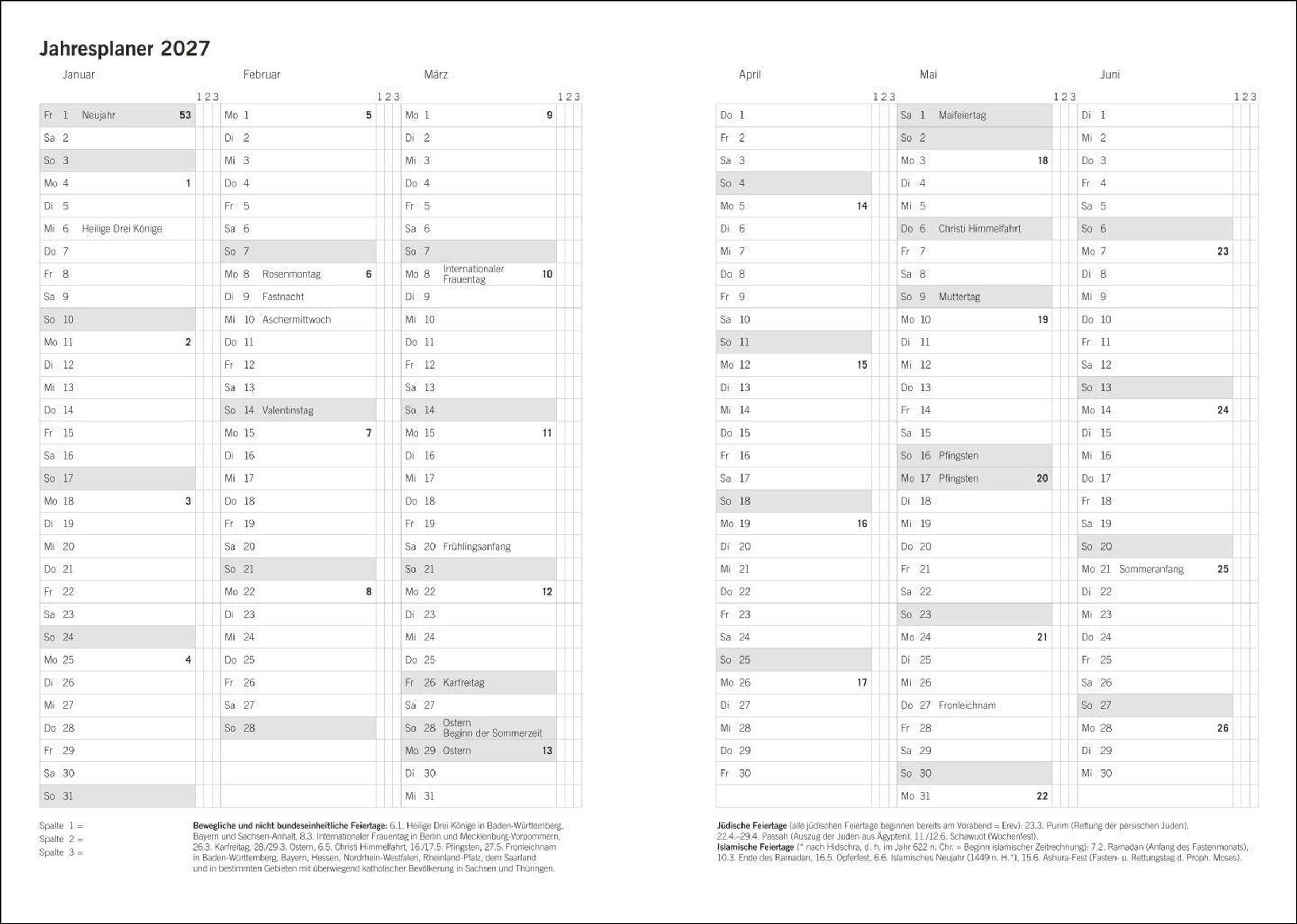 A6 Format für den perfekten Überblick: Taschenkalender mit einer Seite Platz pro Woche