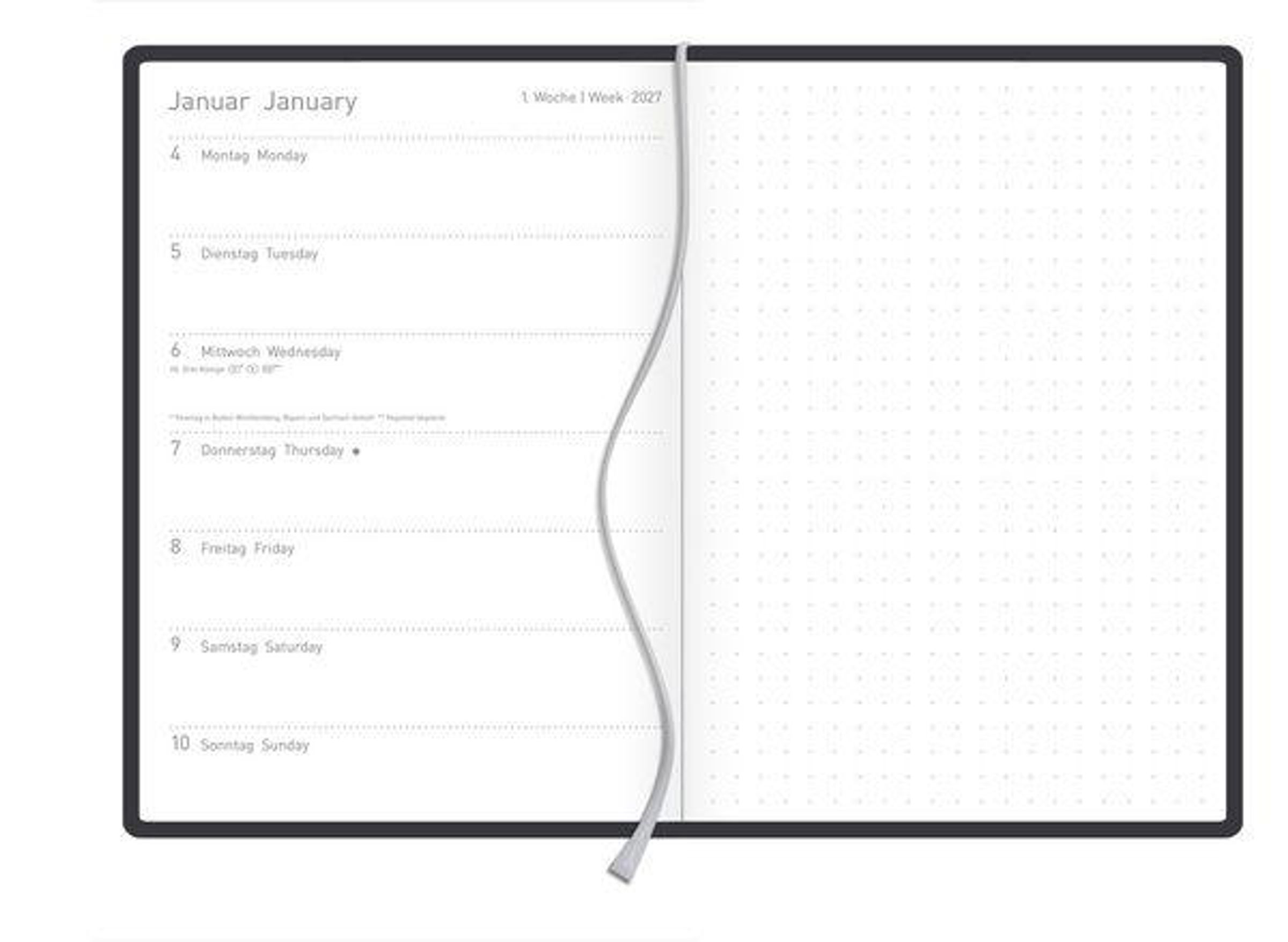 - Praktische Wochenübersicht; Jede Kalenderwoche übersichtlich auf einer Doppelseite