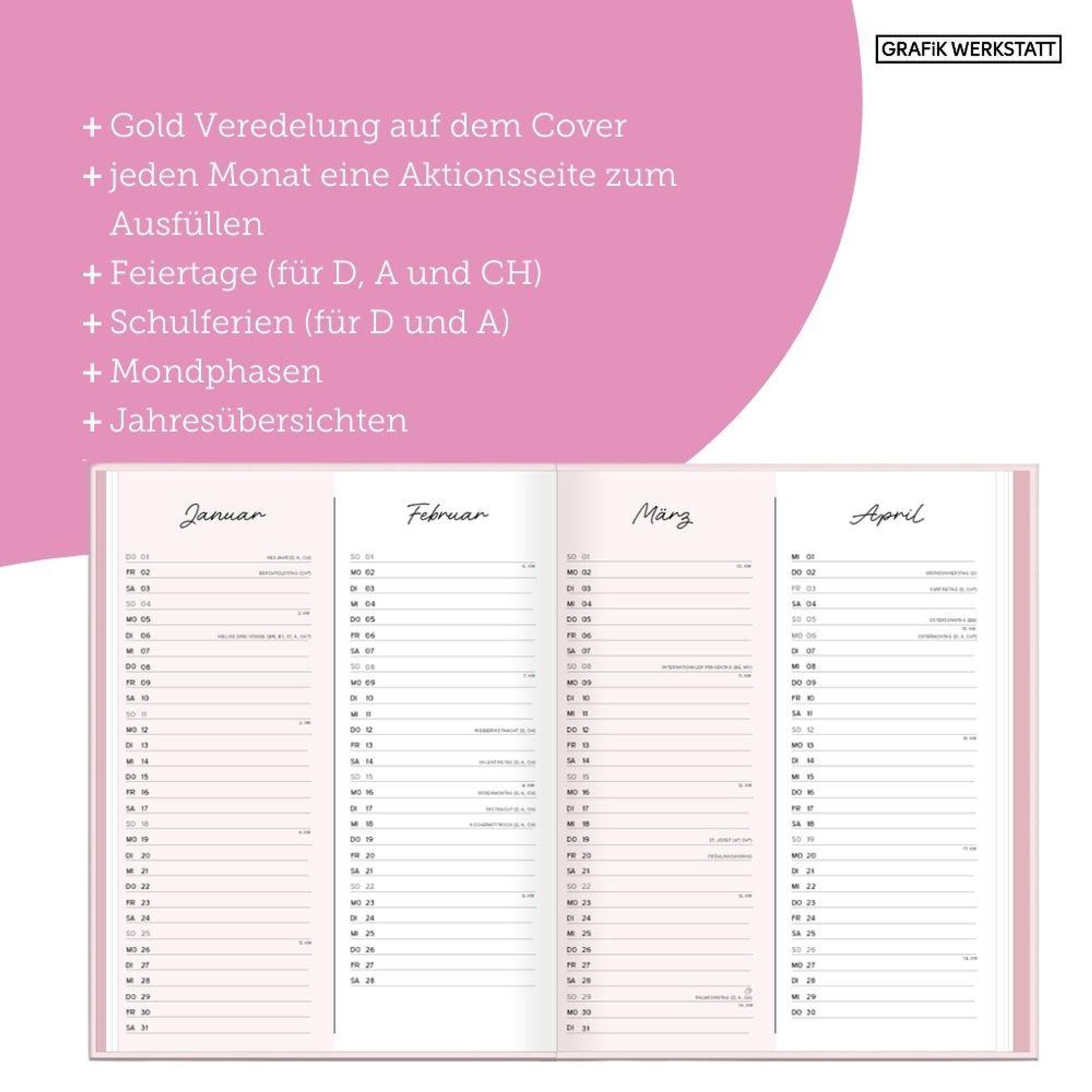 ¿ Großer Terminplaner mit hochwertiger Fadenheftung und Softcover in Lederoptik mit Goldveredelung (18 x 23, 5 cm)