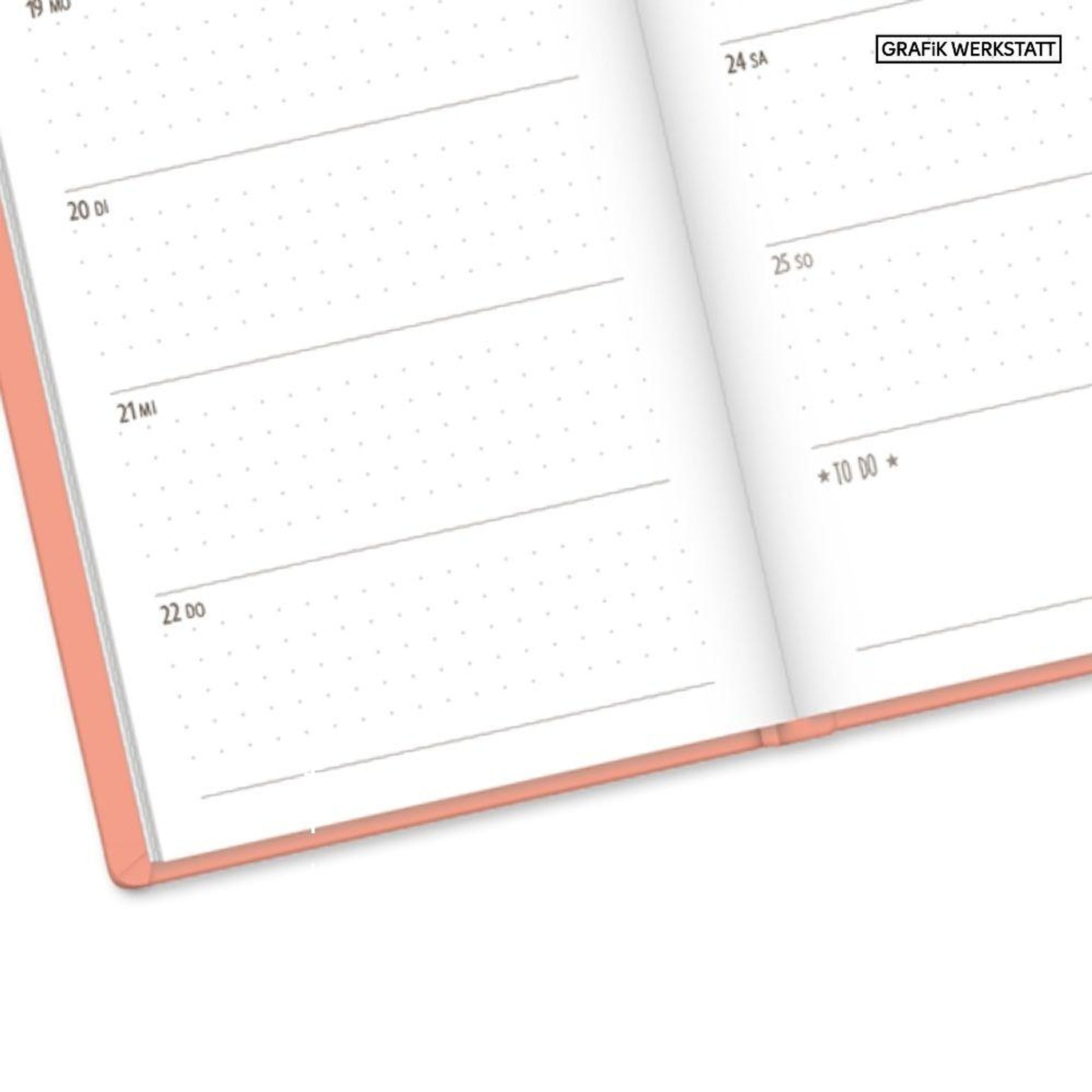 Mit diesem kleinen Terminplaner kannst du das Jahr 2027 strukturiert und einfach planen. Dank der Wochenübersicht auf einer Doppelseite, viel Platz für Notizen und einem Satin-Lesezeichen verlierst du niemals den Überblick. Eine Jahres- & Monatsvorschau auf einer Seite bietet dir die Möglichkeit das Jahr 2027 optimal zu planen.