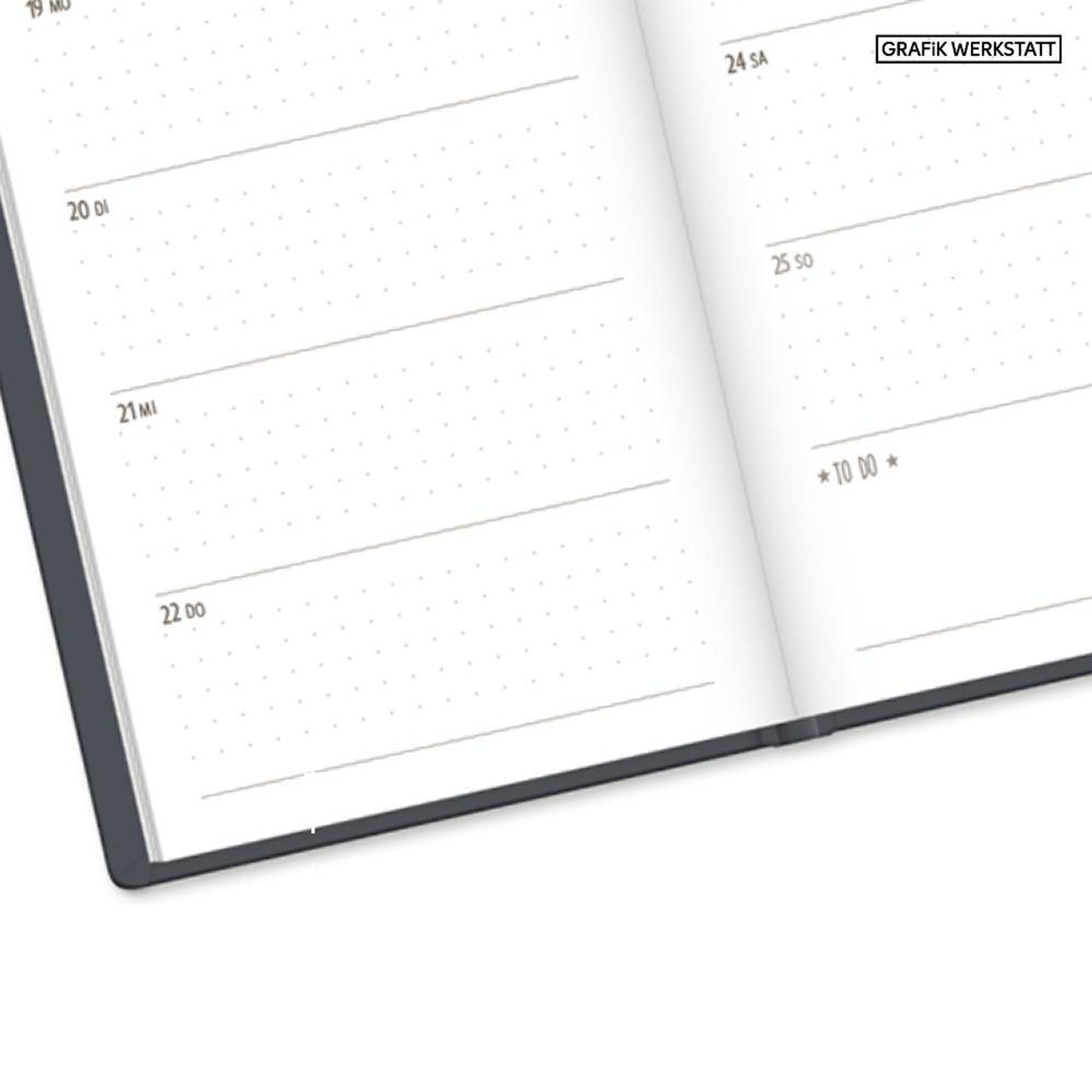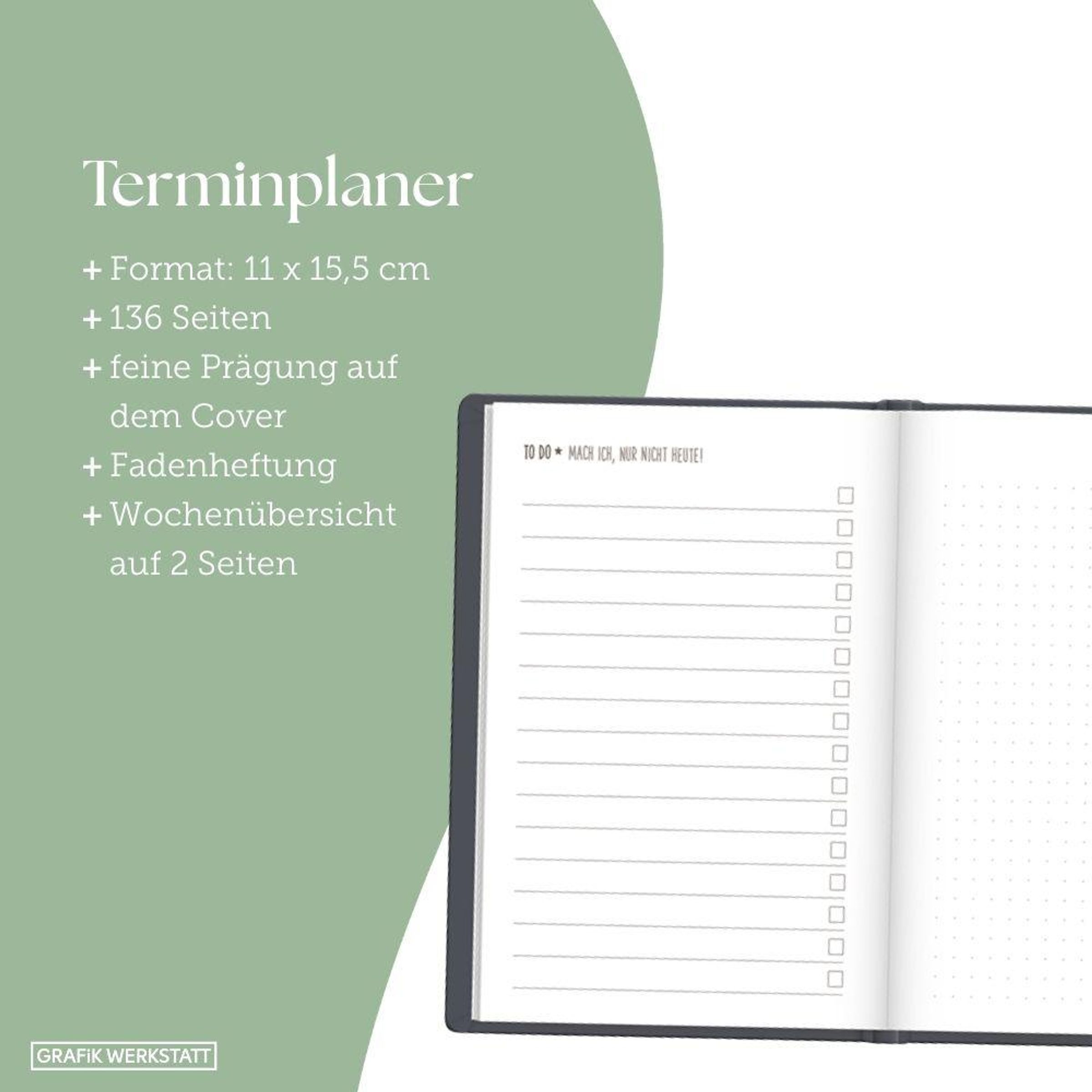 Mit diesem kleinen Terminplaner kannst du das Jahr 2027 strukturiert und einfach planen. Dank der Wochenübersicht auf einer Doppelseite, viel Platz für Notizen und einem Satin-Lesezeichen verlierst du niemals den Überblick. Eine Jahres- & Monatsvorschau auf einer Seite bietet dir die Möglichkeit das Jahr 2027 optimal zu planen.