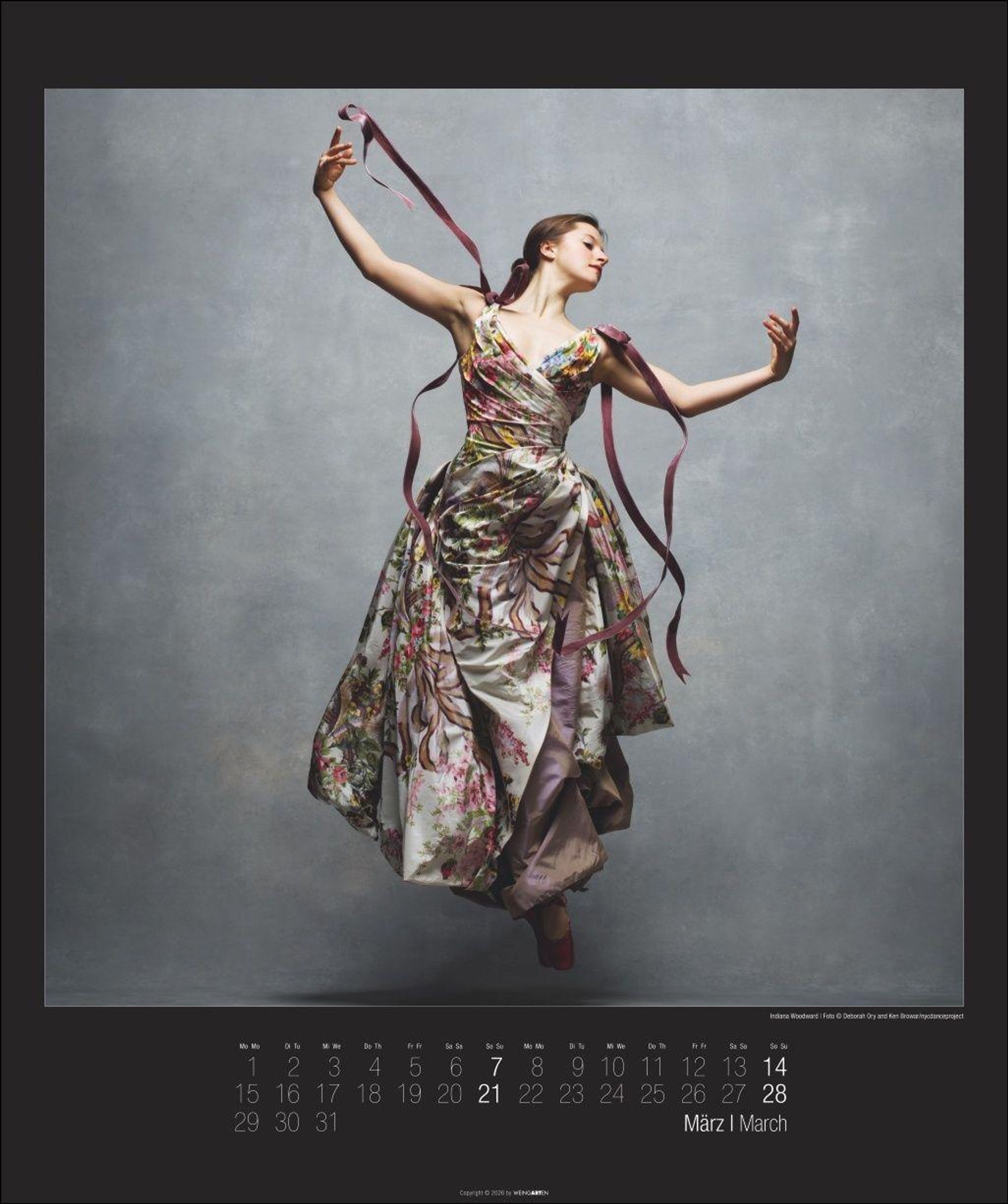 Wenn die Bühne zum Laufsteg wird: Wallende Kleider und anmutige Tanzbewegungen in einem großen Wandkalender der begeistert