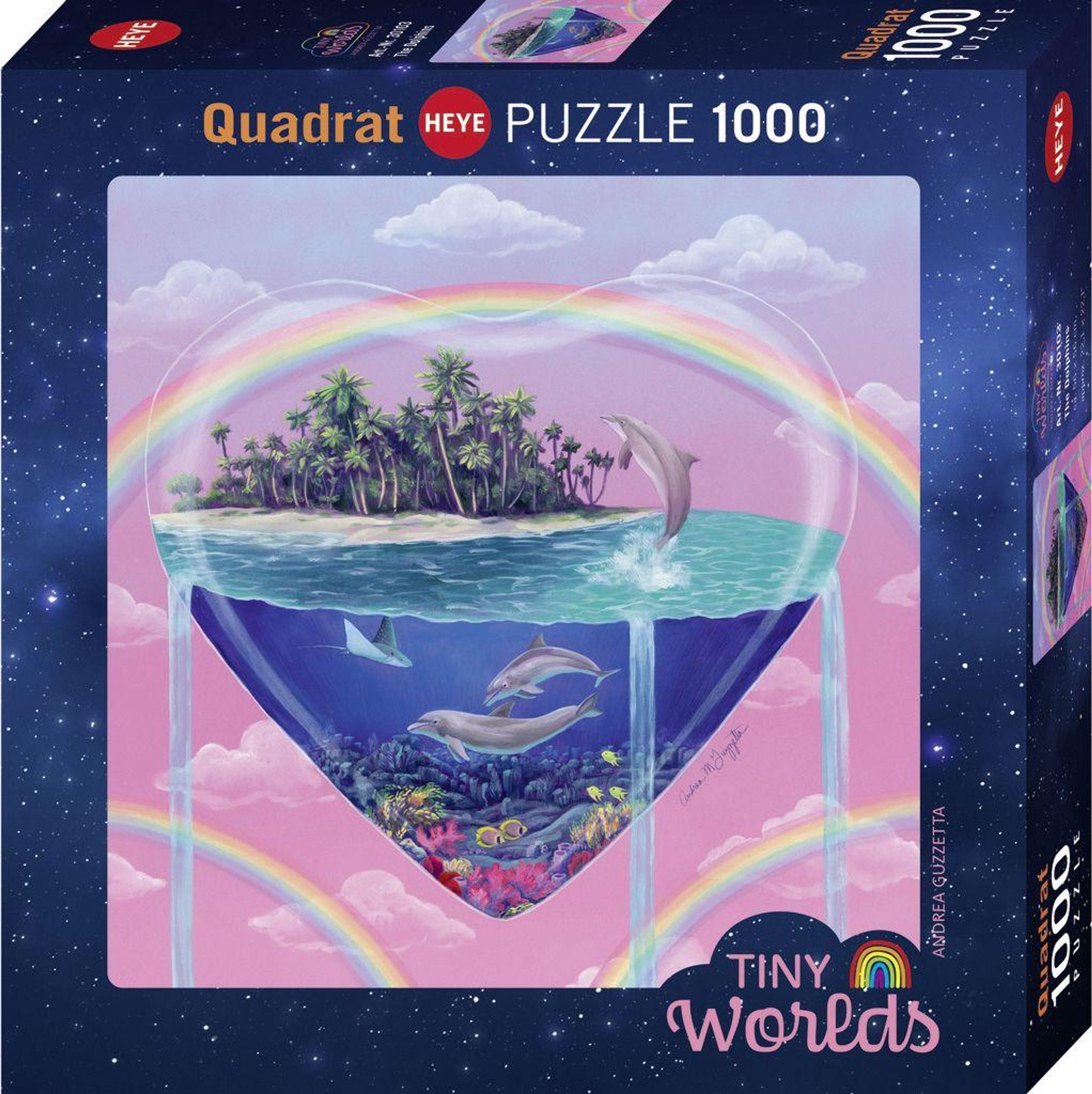 Text: "Quadrat HEYE PUZZLE 1000", "Tiny Worlds".