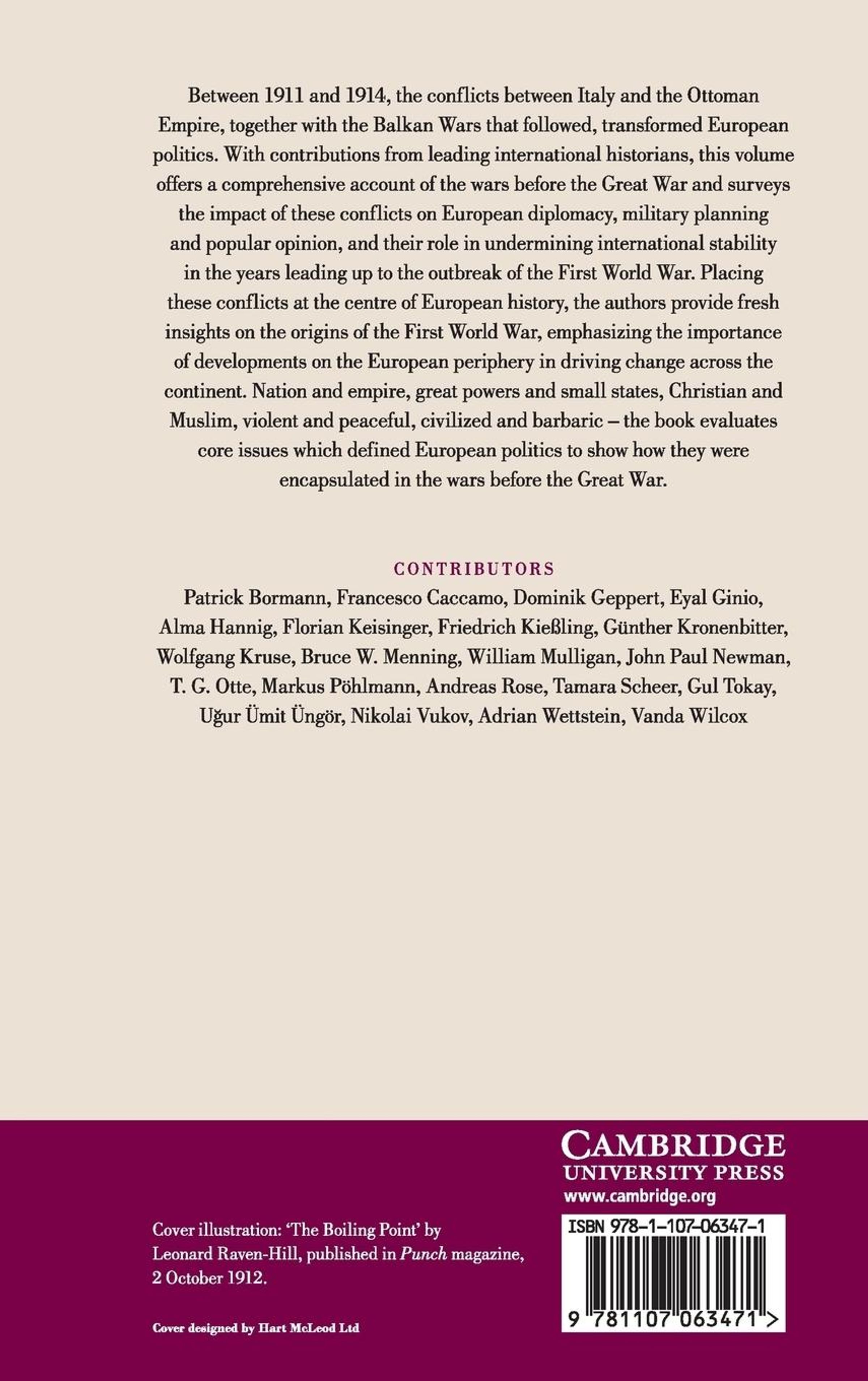 Between 1911 and 1914, the conflicts between Italy and the Ottoman Empire, together with the Balkan wars that followed, transformed European politics. With contributions from leading, international historians, this volume offers a comprehensive account of the wars before the Great War and surveys the impact of these conflicts on European diplomacy, military planning, popular opinion and their role in undermining international stability in the years leading up to the outbreak of the First World War. Placing these conflicts at the centre of European history, the authors provide fresh insights on the origins of World War I, emphasizing the importance of developments on the European periphery in driving change across the continent. Nation and empire, great powers and small states, Christian and Muslim, violent and peaceful, civilized and barbaric - the book evaluates core issues which defined European politics to show how they were encapsulated in the wars before the Great War.