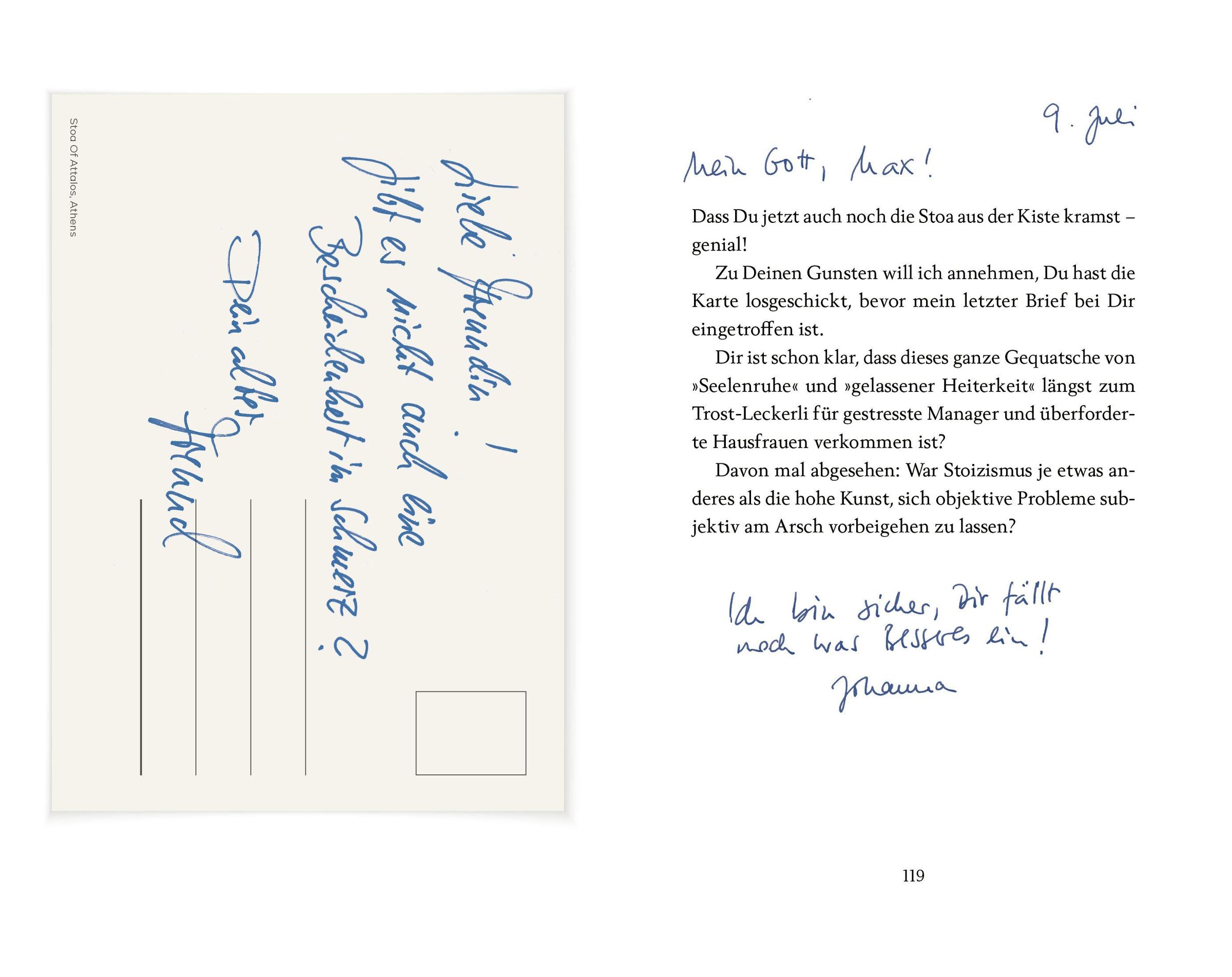 »Wie geht es Dir?« Als Johanna von Max, ihrem alten philosophischen Lehrer, eine Postkarte mit dieser scheinbar harmlosen Frage erhält, bricht es aus ihr hervor: die Trauer über den Tod ihrer Mutter, die Wut, dass man ihr im Krankenhaus verwehrt hat, die Sterbende zu begleiten. Provoziert durch weitere Postkarten, beginnt Johanna, sich den Dämonen hinter ihrer Verzweiflung zu stellen. In einem einzigartigen Postkarten-Briefroman erzählt die Literatin und Philosophin Thea Dorn von den vielleicht größten Themen, die der gottferne, von seinen technologischen Möglichkeiten berauschte Mensch verdrängt: von der Auseinandersetzung mit der Endlichkeit, von der Suche nach Trost in trostlosen Zeiten.