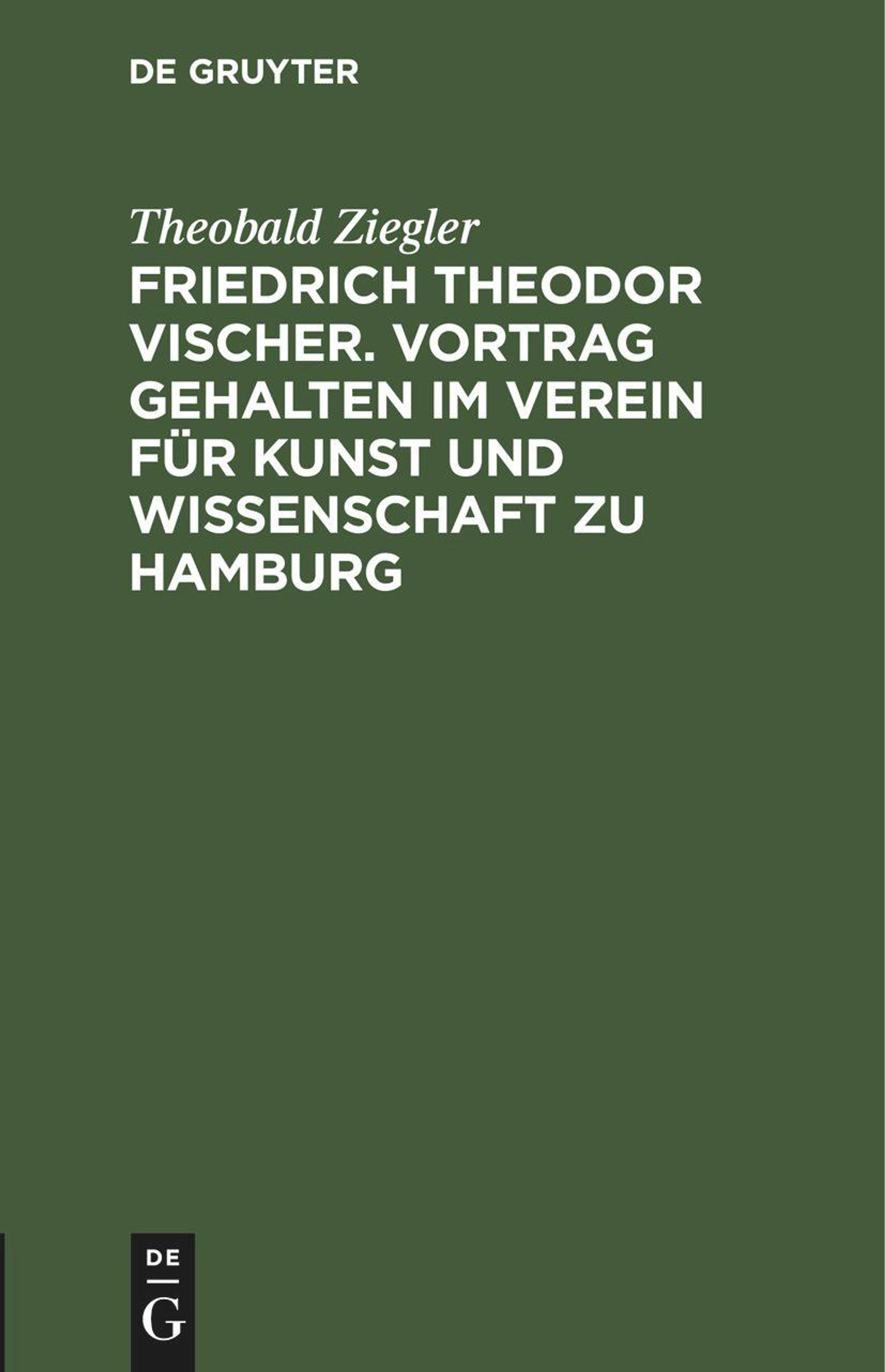 Theobald Ziegler: Friedrich Theodor Vischer. Vortrag gehalten im Verein für Kunst und Wissenschaft zu Hamburg, Gebunden