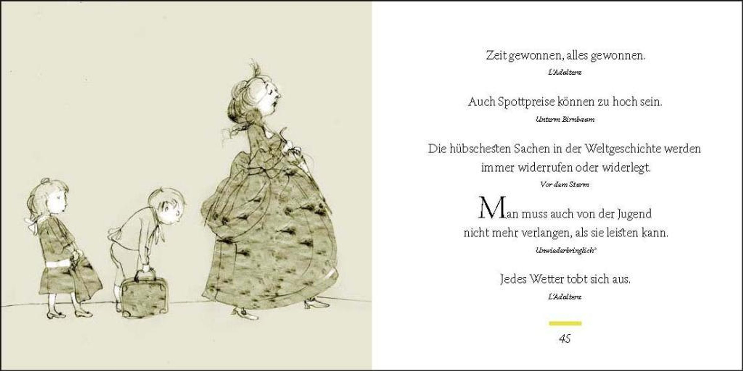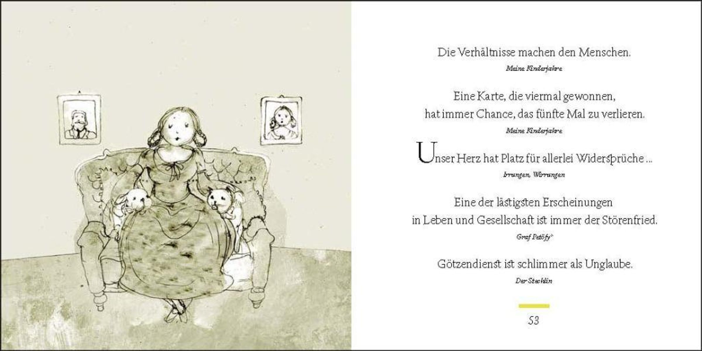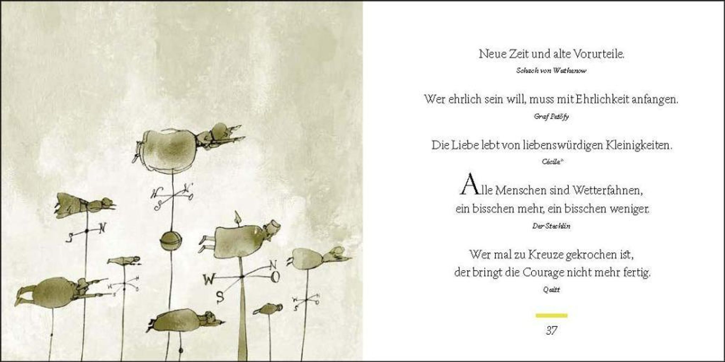 Theodor Fontane kannte vieles und viele und so hielt er in seinen tragenden Werken unzählige Lebensweisheiten fest, die ihn auch als bisher kaum wahrgenommenen Aphoristiker zeigen, mal scharfzüngig und schonungslos, mal feinsinnig und versöhnlich. 'Wer Großes hüten will, muss auch das Kleine zu hüten verstehen', schrieb er in 'Frau Jenny Treibel' und tat es mit jedem seiner Romane. Beleg sei dieses bibliophile Geschenkbuch mit einer bisher nirgends veröffentlichten Zitaten-Sammlung, illustriert durch die Berliner Künstlerin Jutta Mirtschin, deren unverkennbare Bilder in spannungsreichen Beziehungen zu den Weisheiten Fontanes stehen. Ein Kleinod zur Besinnung, Freude und Erkenntnis.