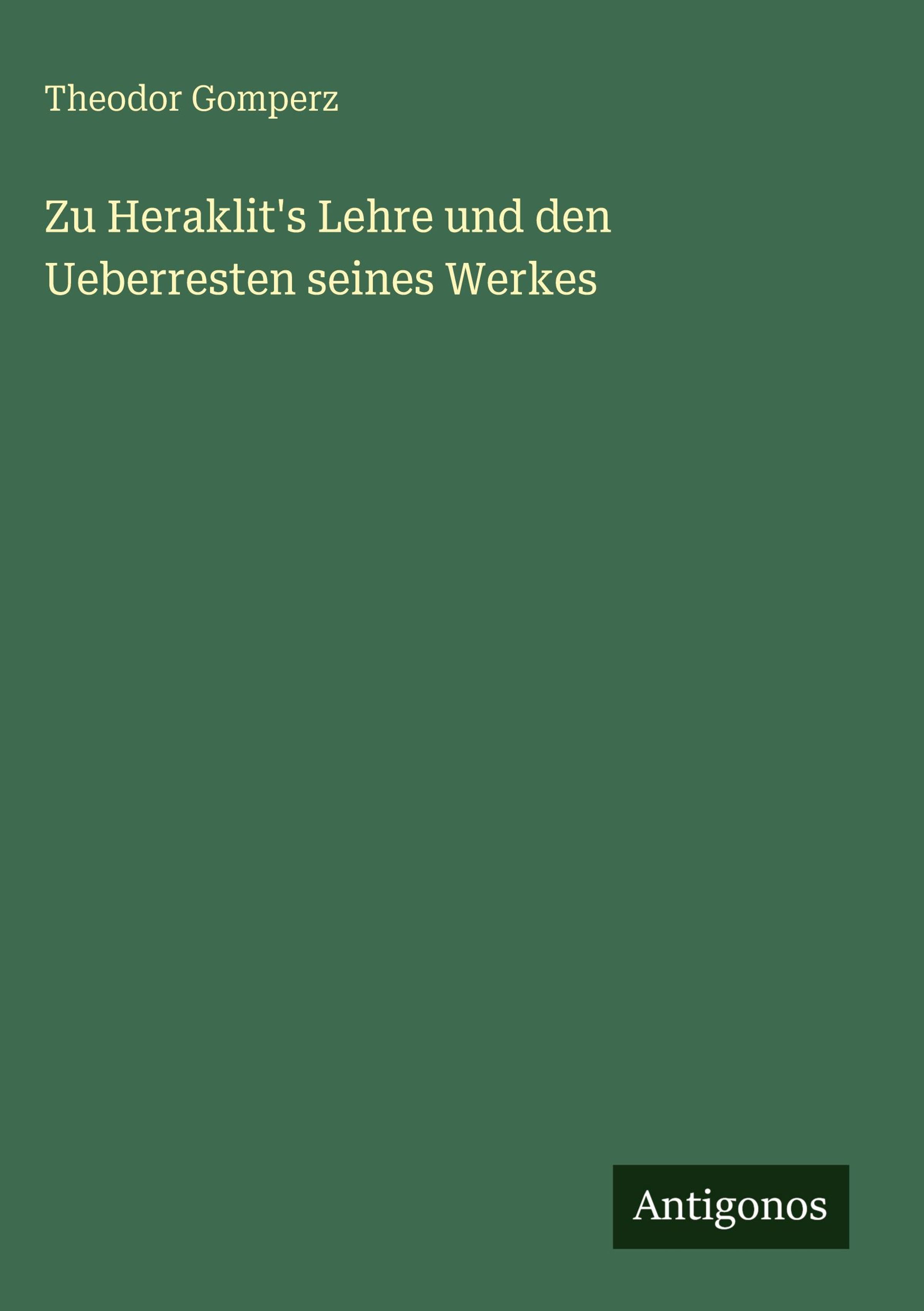 Theodor Gomperz: Zu Heraklit's Lehre und den Ueberresten seines Werkes, Gebunden