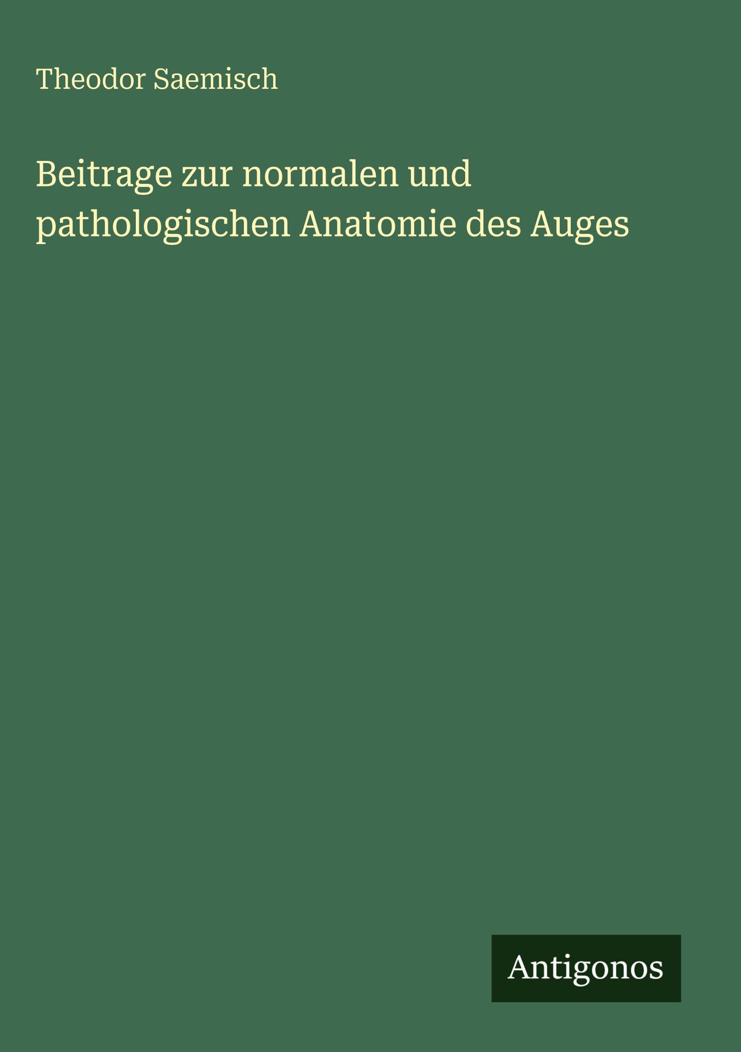 Theodor Saemisch: Beitrage zur normalen und pathologischen Anatomie des Auges, Gebunden