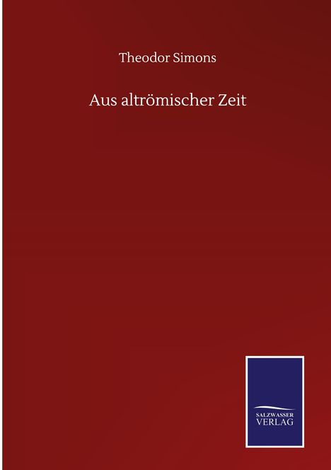 Theodor Simons: Aus altrömischer Zeit, Gebunden