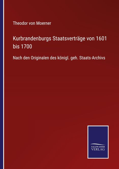 Theodor Von Moerner: Kurbrandenburgs Staatsverträge von 1601 bis 1700, Kartoniert / Broschiert