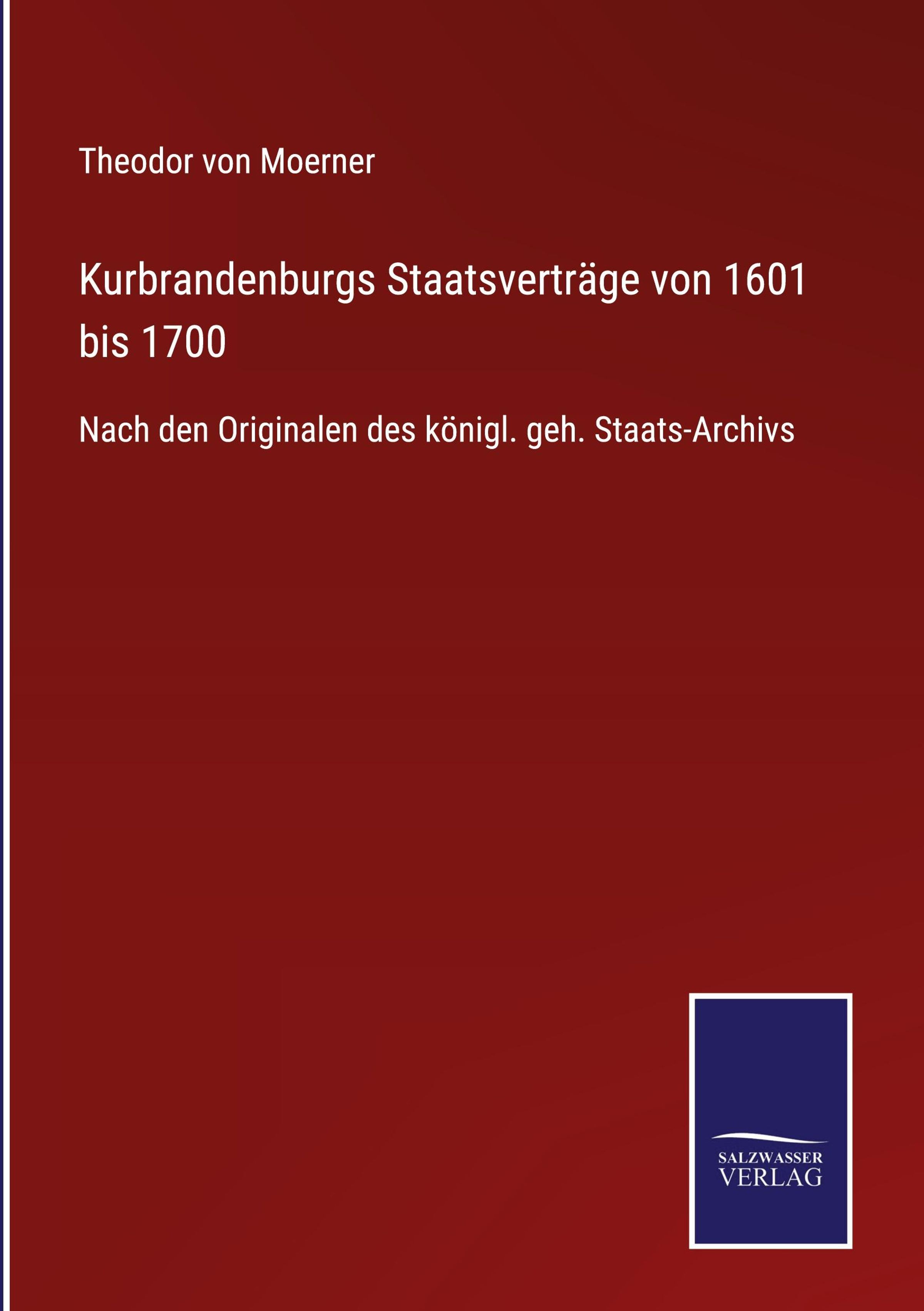 Theodor Von Moerner: Kurbrandenburgs Staatsverträge von 1601 bis 1700, Gebunden