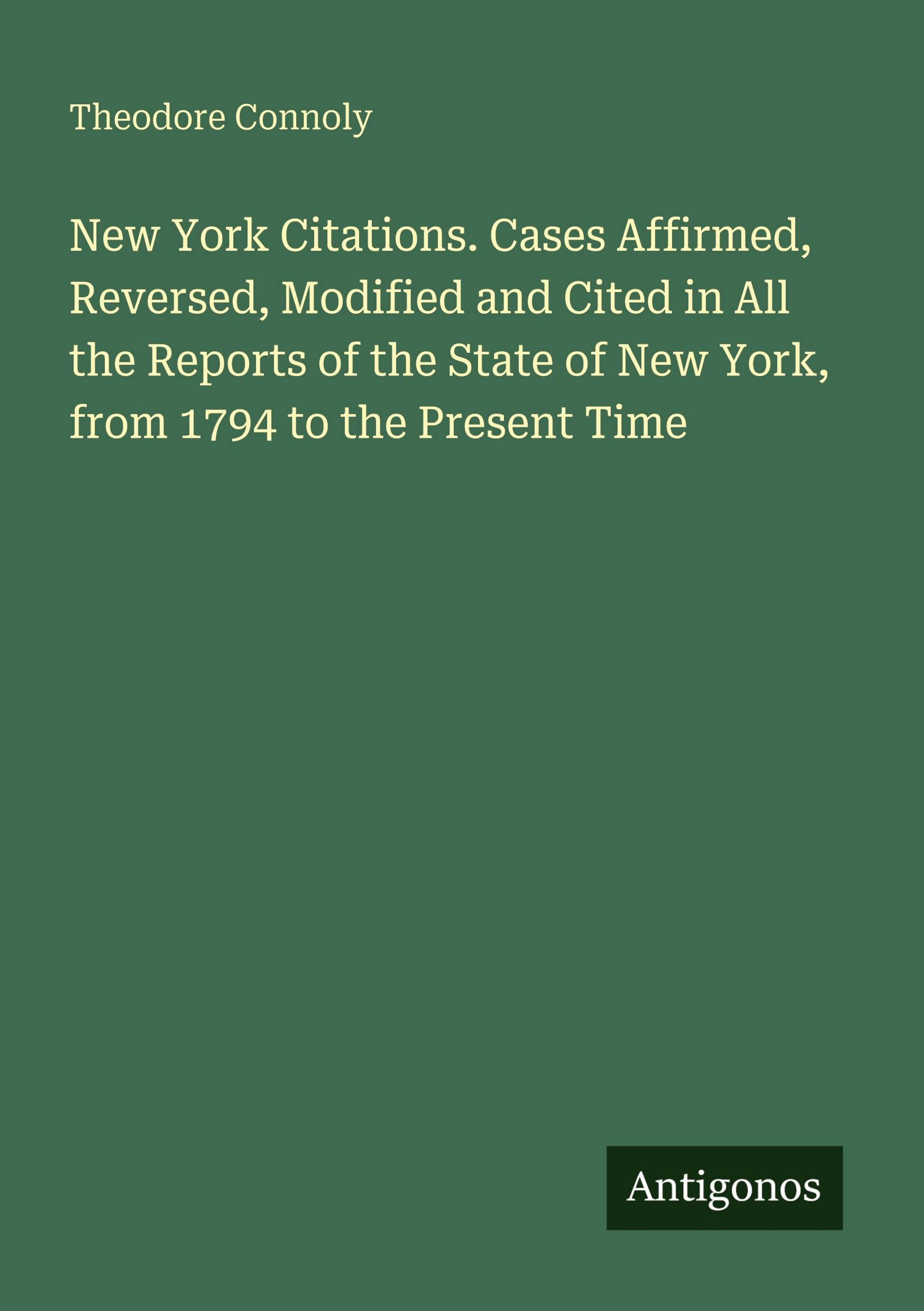 Theodore Connoly: New York Citations. Cases Affirmed, Reversed, Modified and Cited in All the Reports of the..., Kartoniert / Broschiert