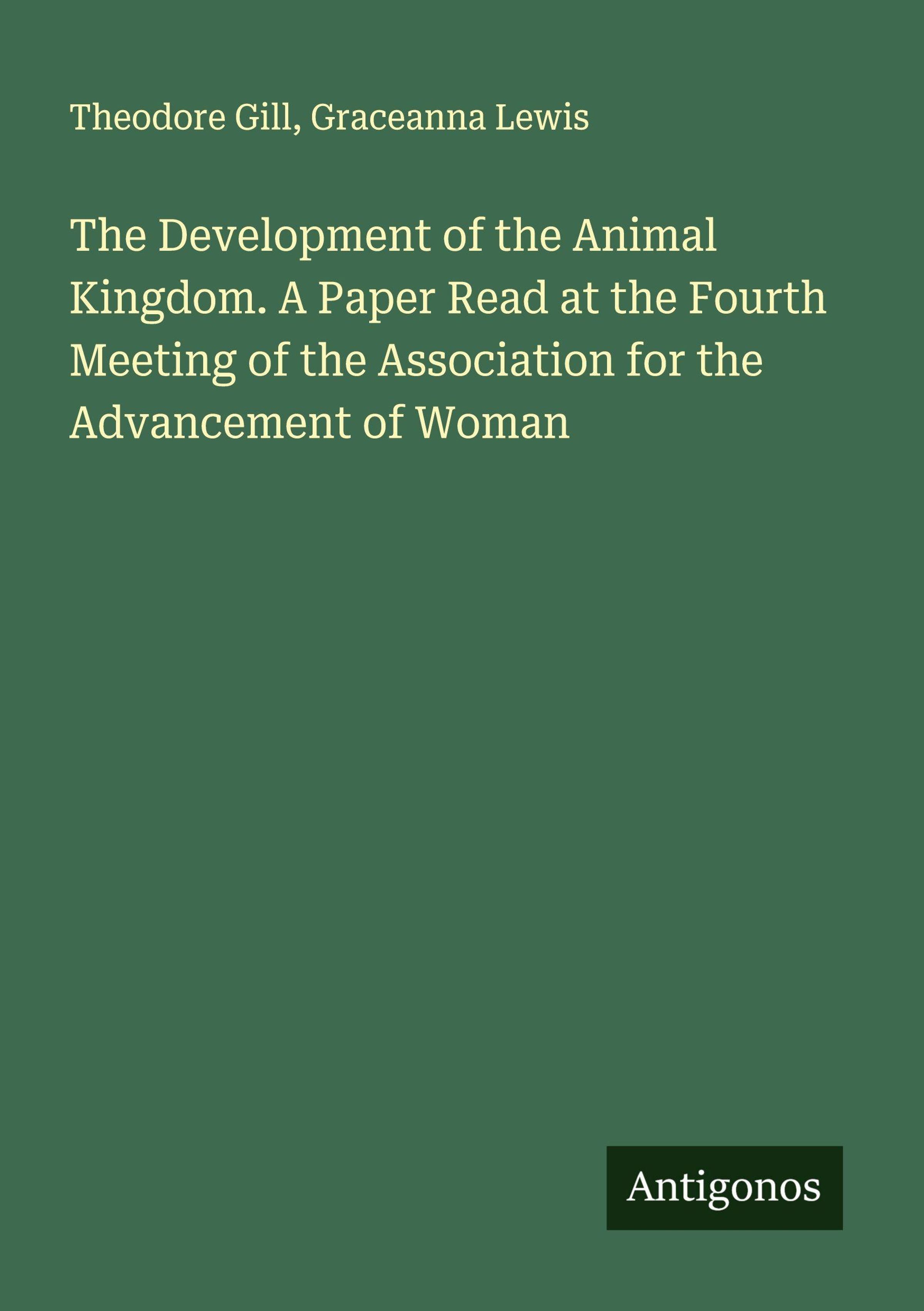 The Development of the Animal Kingdom. A Paper Read at the Fourth Meeting of the Association for the Advancement of Woman
