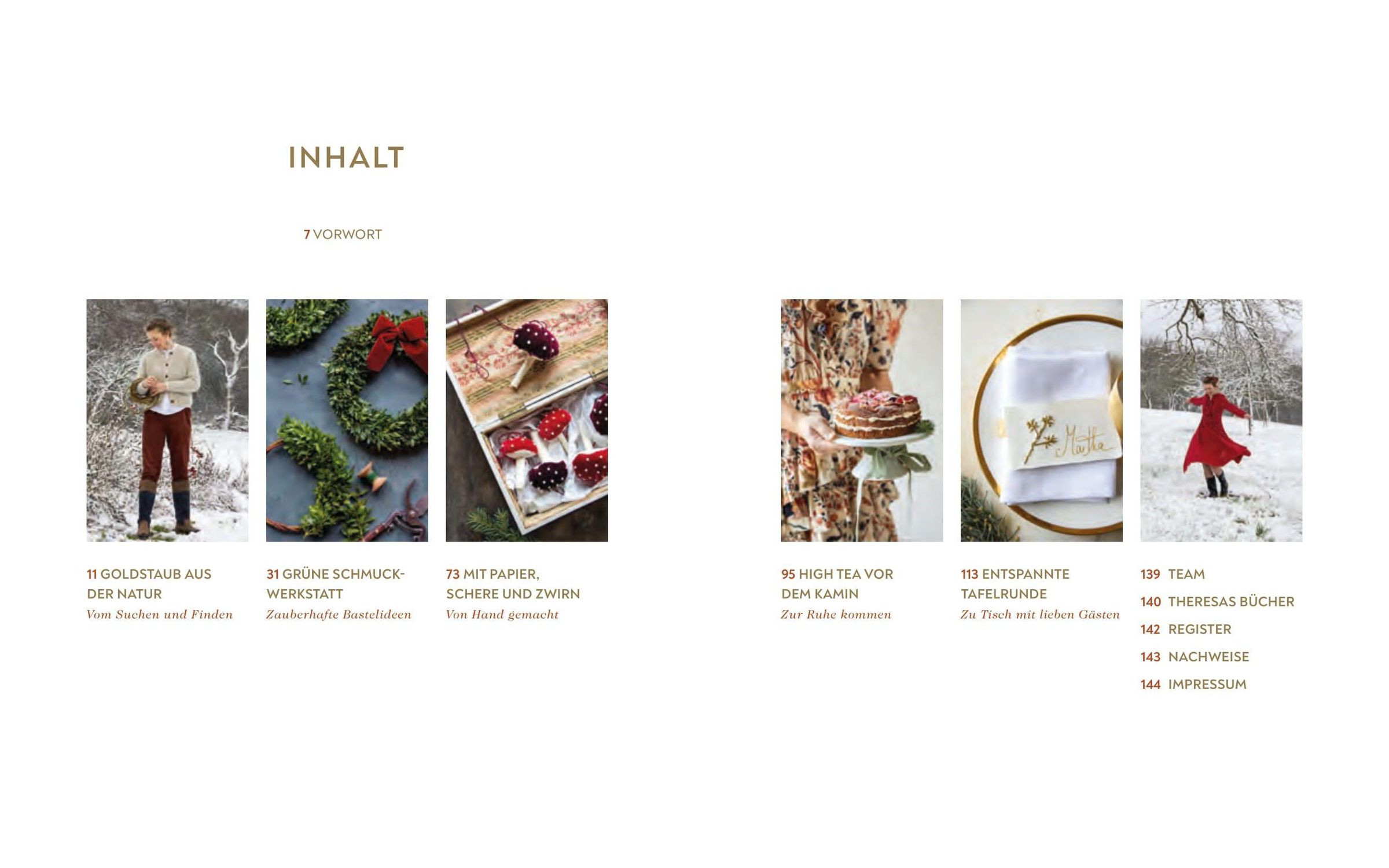 Inmitten der weiten Landschaft Luxemburgs, umgeben von prächtigen Haselnusssträuchern, liegt das "Hazelnut House". Für die Bestsellerautorin Theresa Baumgärtner ist dieser besondere und naturnahe Ort eine stetige Inspirationsquelle. Mit dem Kopf voller Ideen eröffnet sie schon im Frühherbst die festliche Zeit. "Goldstaub aus der Natur ins Haus tragen", nennt sie gern die Dinge, die sie direkt vor der Tür entdeckt. Aus Weide entstehen zauberhafte Kränze, die mit unterschiedlichem Grün und getrockneten Blüten dekoriert werden. Es duftet nach Harz und Moos, aber auch nach Bratäpfeln und Zimtherzen, die Theresa zum Fünf-Uhr-Tee serviert. In ihrer Schmuckwerkstatt näht sie prächtige Pilze aus Samt und prägt schimmernde Goldtaler für eine Girlande. Stück für Stück entsteht diese einzigartig vorweihnachtliche Atmosphäre, an der sie uns mit diesem Buch teilhaben lässt. Ob Maronensüppchen oder Lachs aus dem Ofen: Theresa verrät uns ihre himmlischen Rezepte für die stimmungsvollste Zeit im Jahr. Herzlich willkommen im "Hazelnut House"!