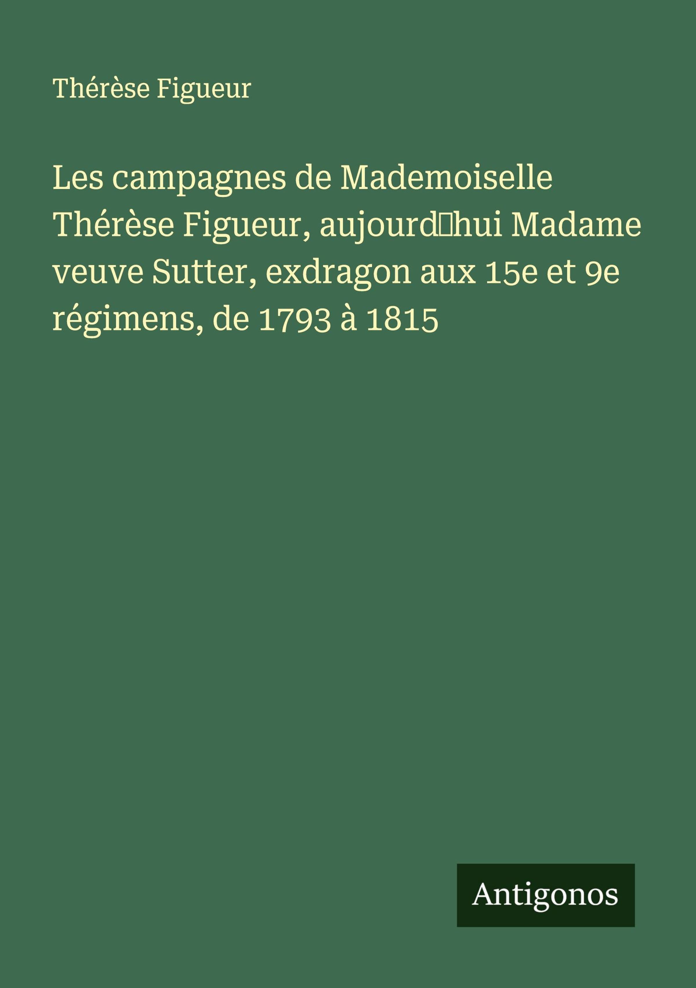 Les campagnes de Mademoiselle Thérèse Figueur, aujourd'hui Madame veuve Sutter, exdragon aux 15e et 9e régimens, de 1793 à 1815