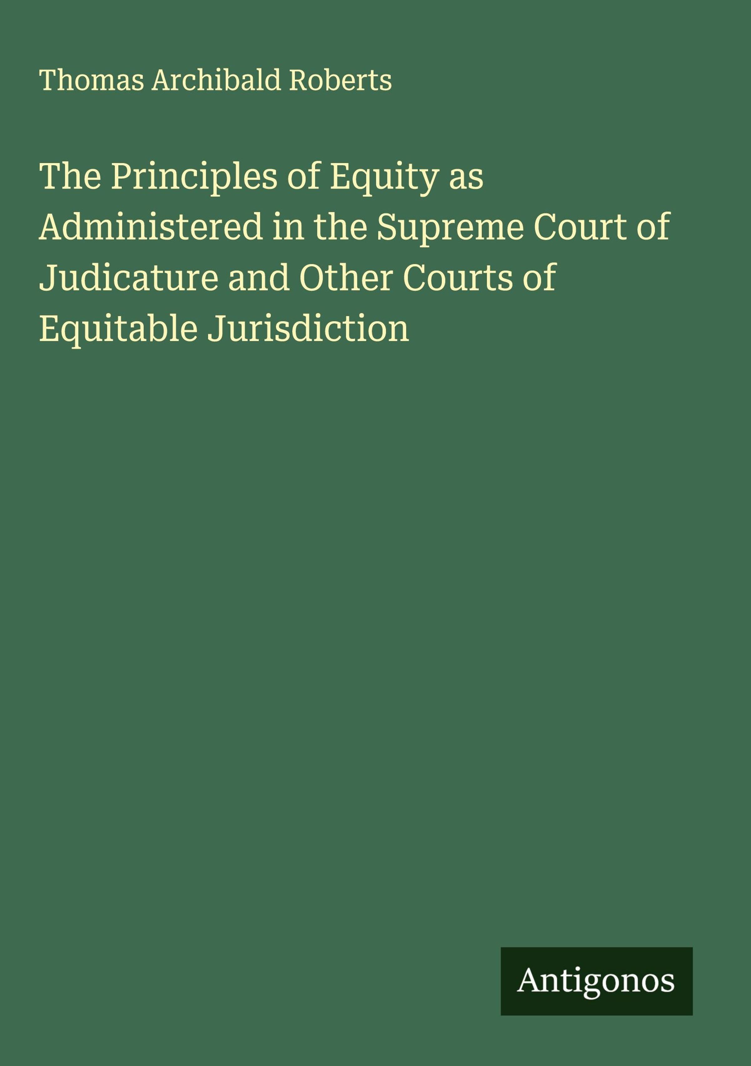 Thomas Archibald Roberts: The Principles of Equity as Administered in the Supreme Court of Judicature and Other..., Gebunden