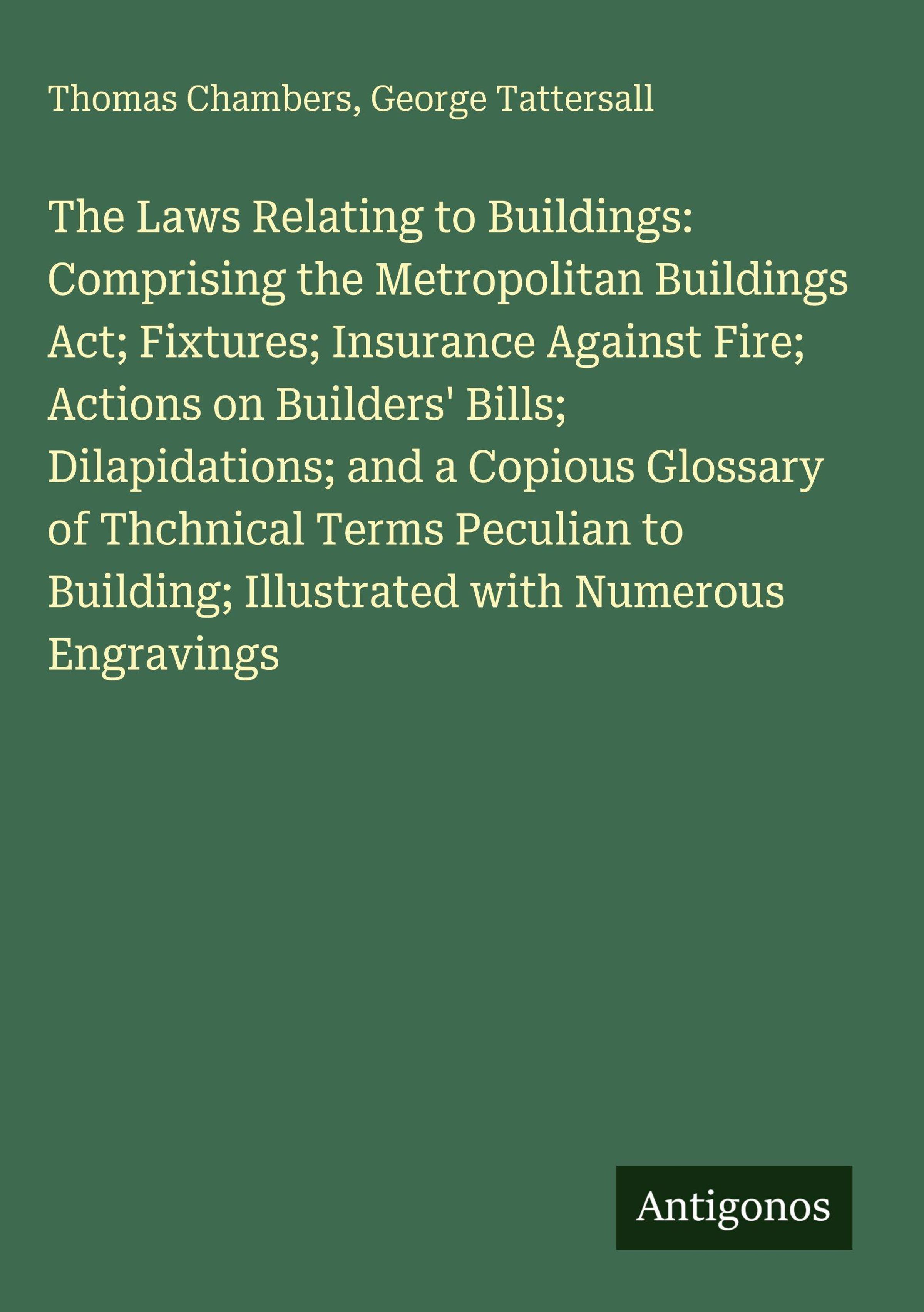 Thomas Chambers: The Laws Relating to Buildings: Comprising the Metropolitan Buildings Act; Fixtures; Insurance..., Gebunden