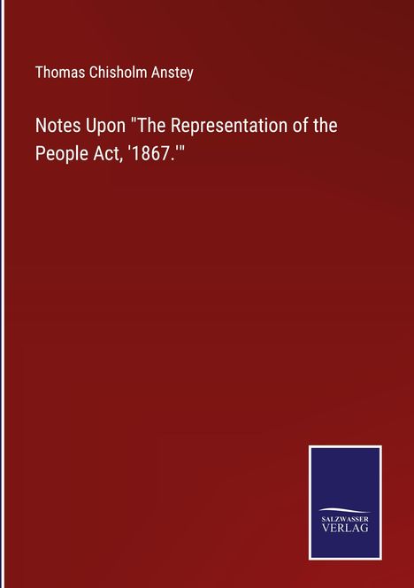 Thomas Chisholm Anstey: Notes Upon "The Representation of the People Act, '1867.'", Gebunden