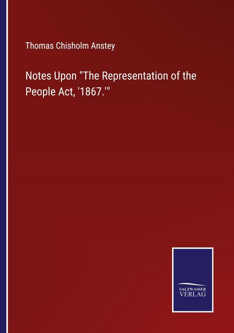 Thomas Chisholm Anstey: Notes Upon "The Representation of the People Act, '1867.'", Kartoniert / Broschiert