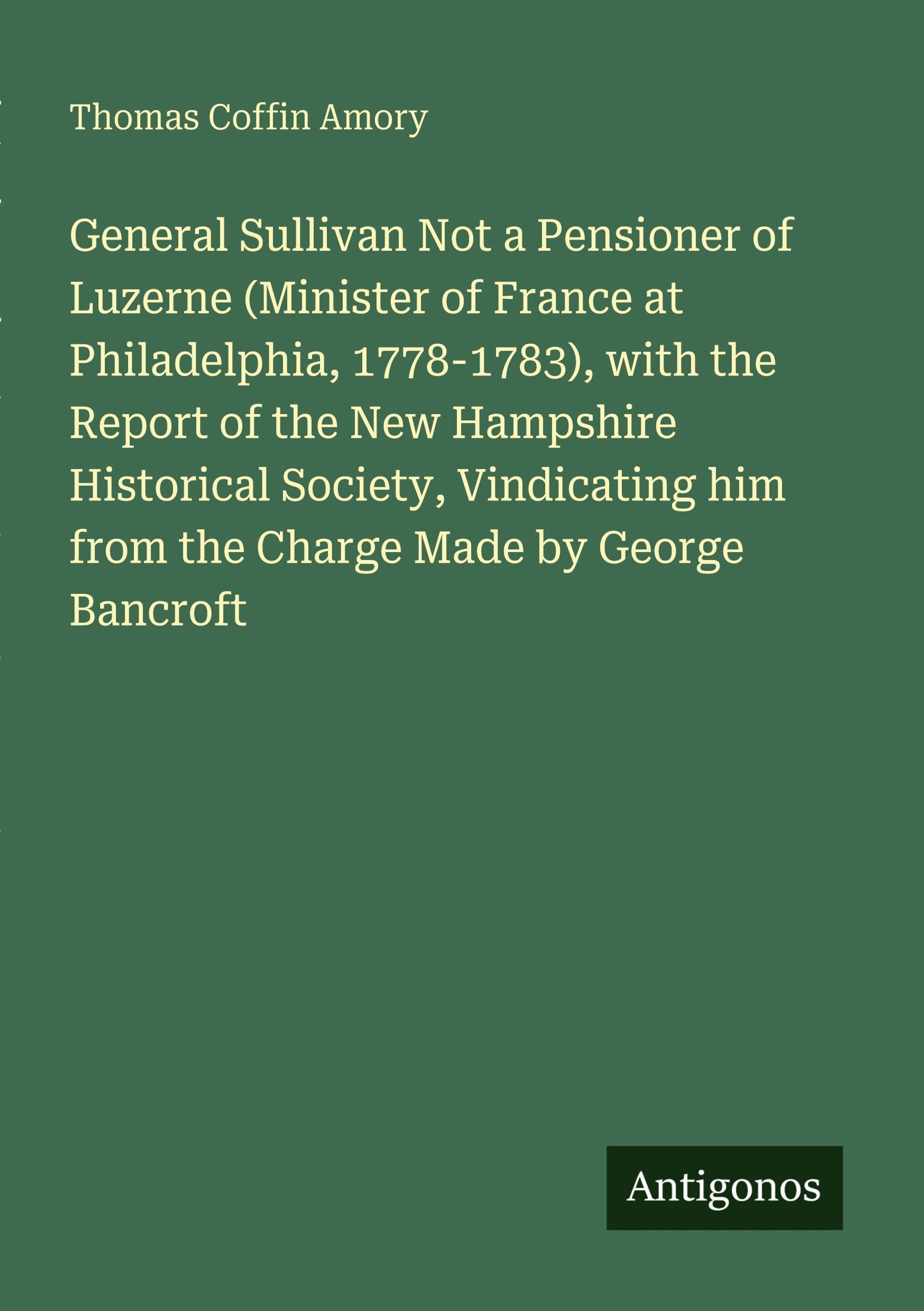 General Sullivan Not a Pensioner of Luzerne (Minister of France at Philadelphia, 1778-1783), with the Report of the New Hampshire Historical Society, Vindicating him from the Charge Made by George Bancroft